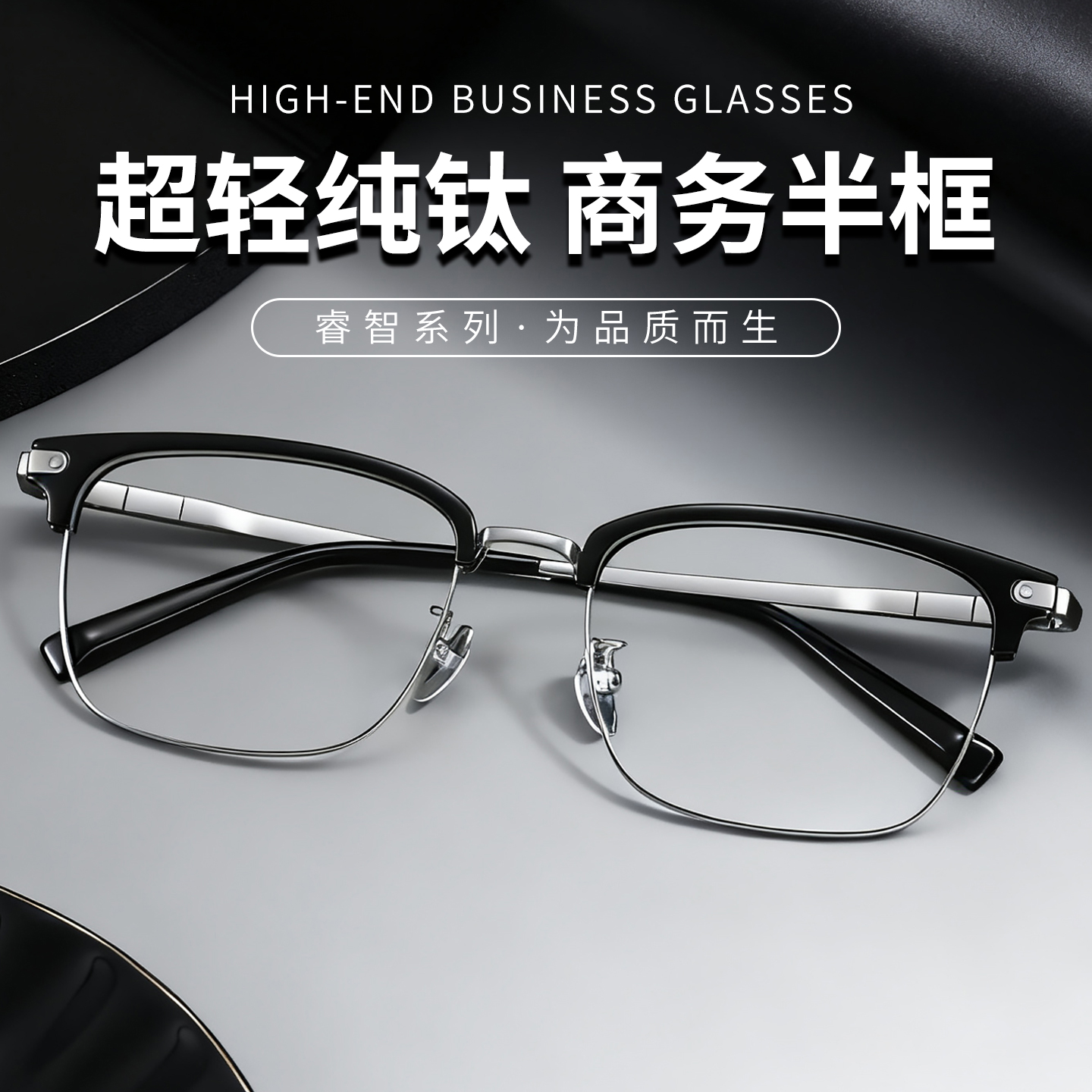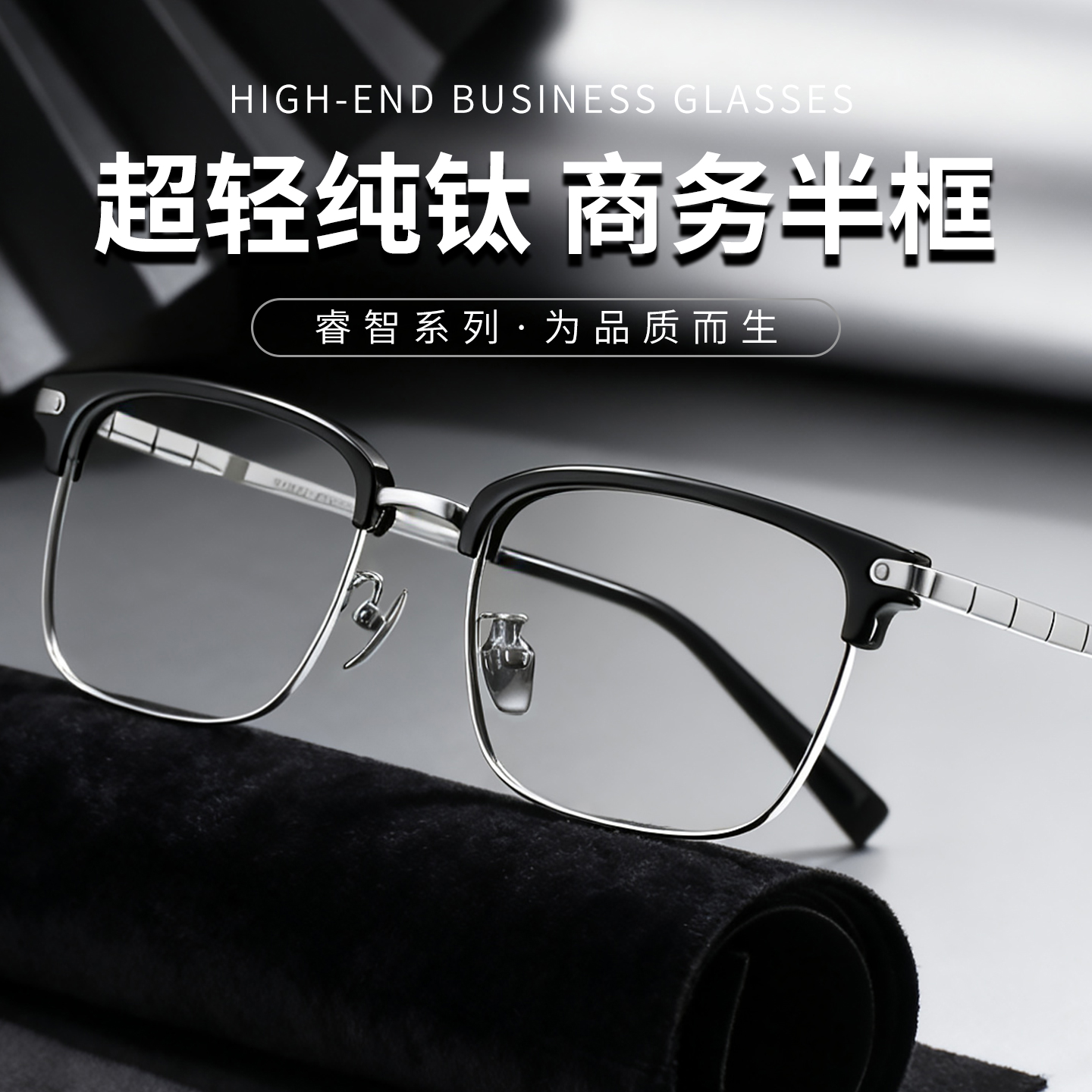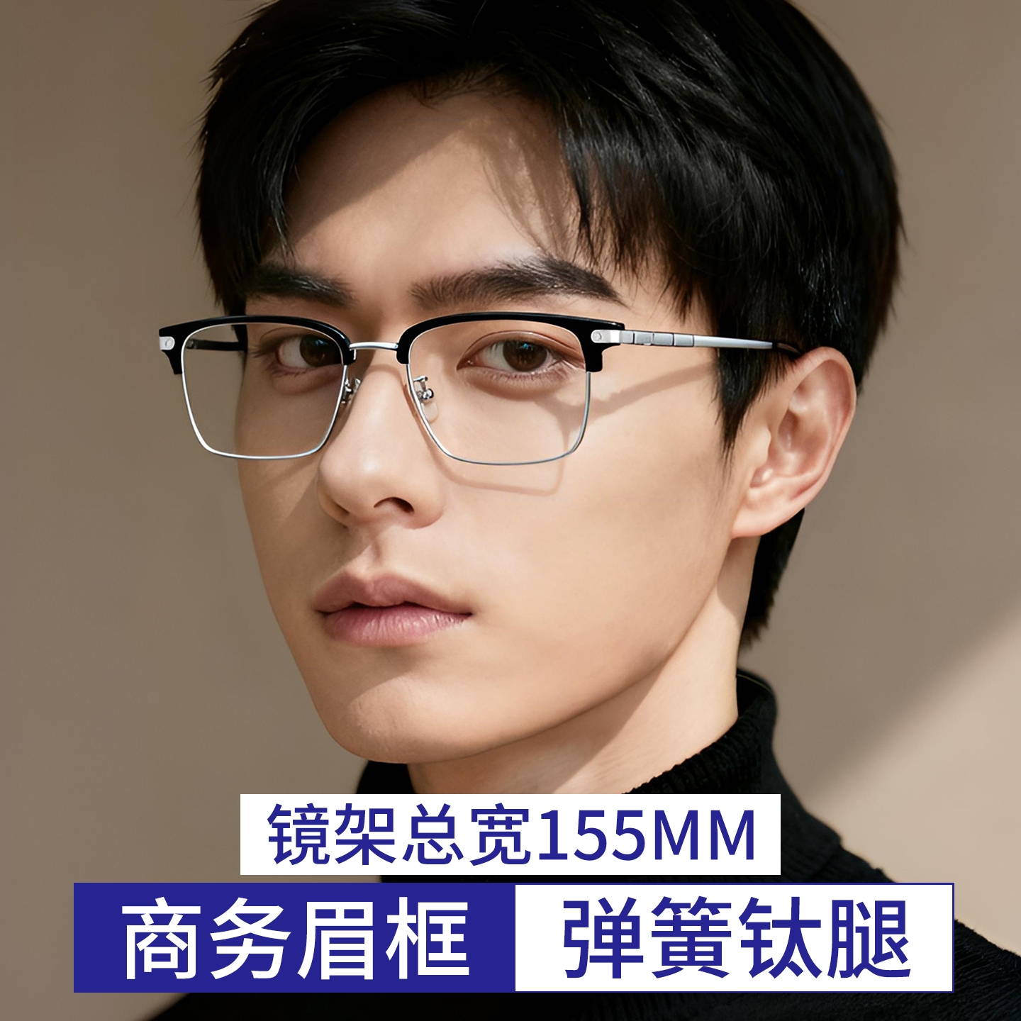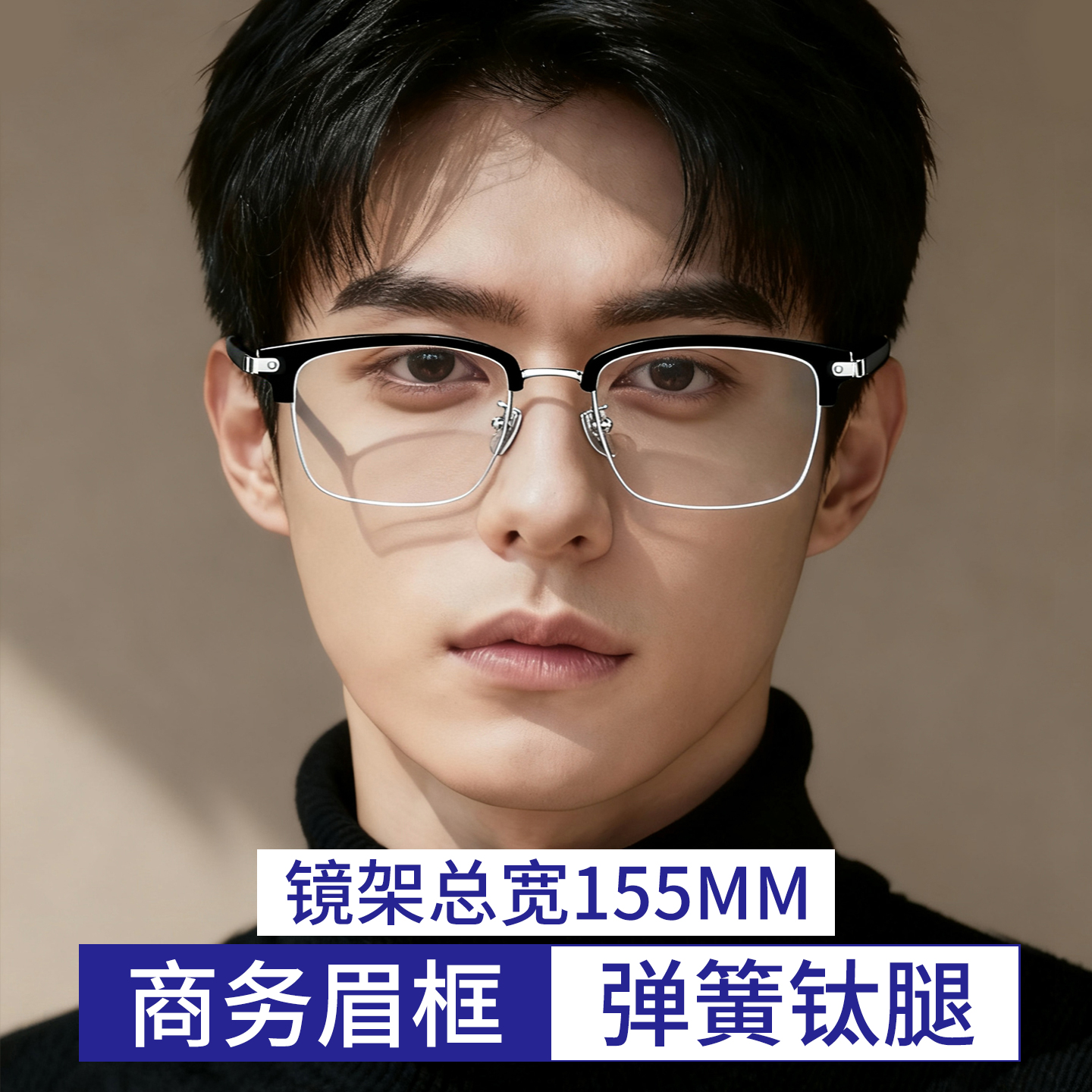 超轻纯钛大脸半框眼镜近视男款 加大加宽155mm胖脸可配度数大宽脸