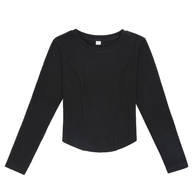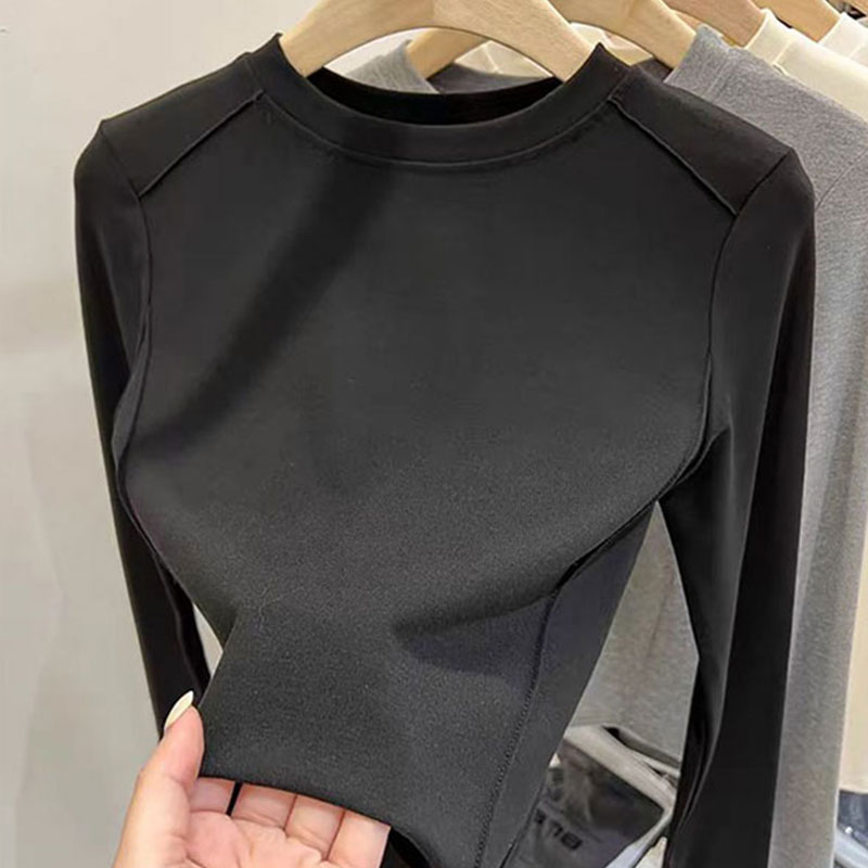 内搭修身 加厚打底衫 弧形下摆保暖上衣 t恤女秋冬新款 白色正肩长袖