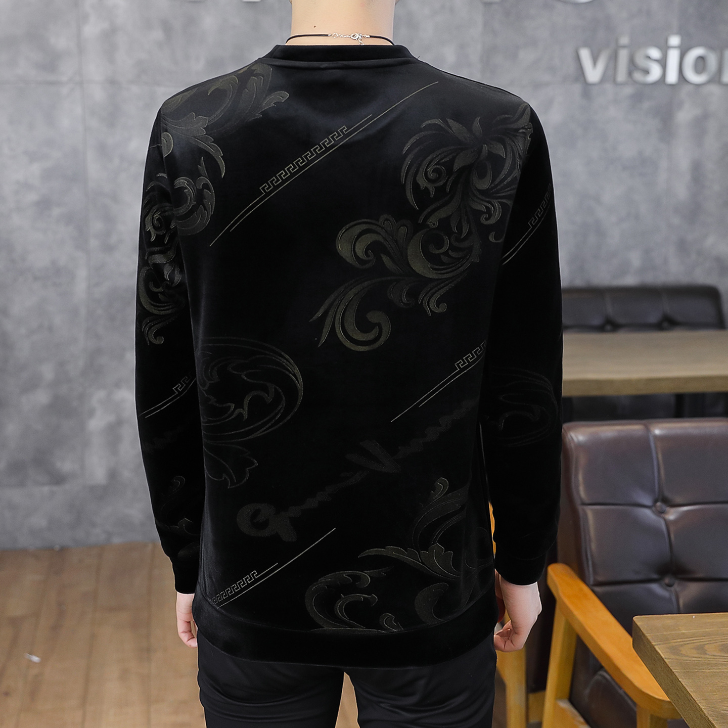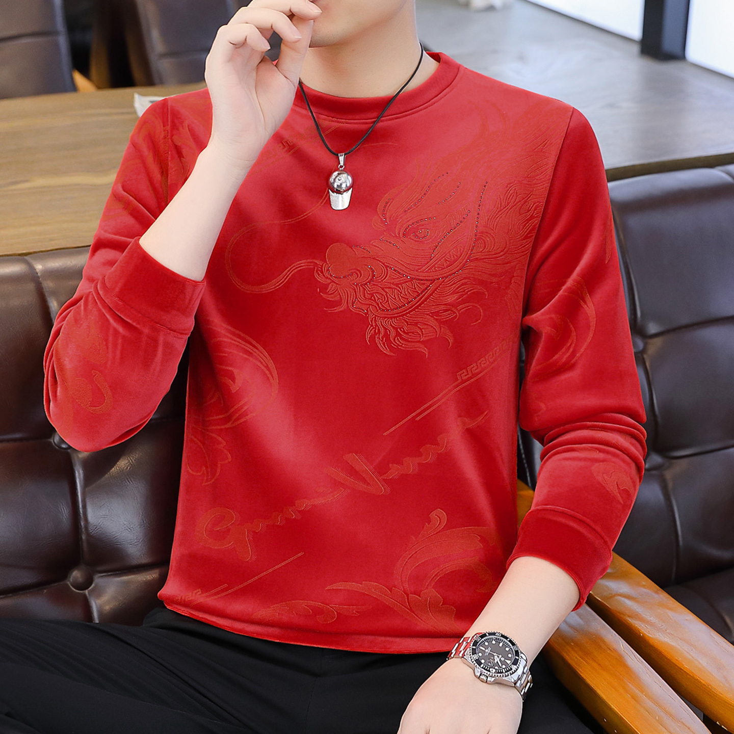 潮牌秋衣加绒宽松长袖 金丝绒男士 秋季 圆领打底衫 T恤男 卫衣秋冬季