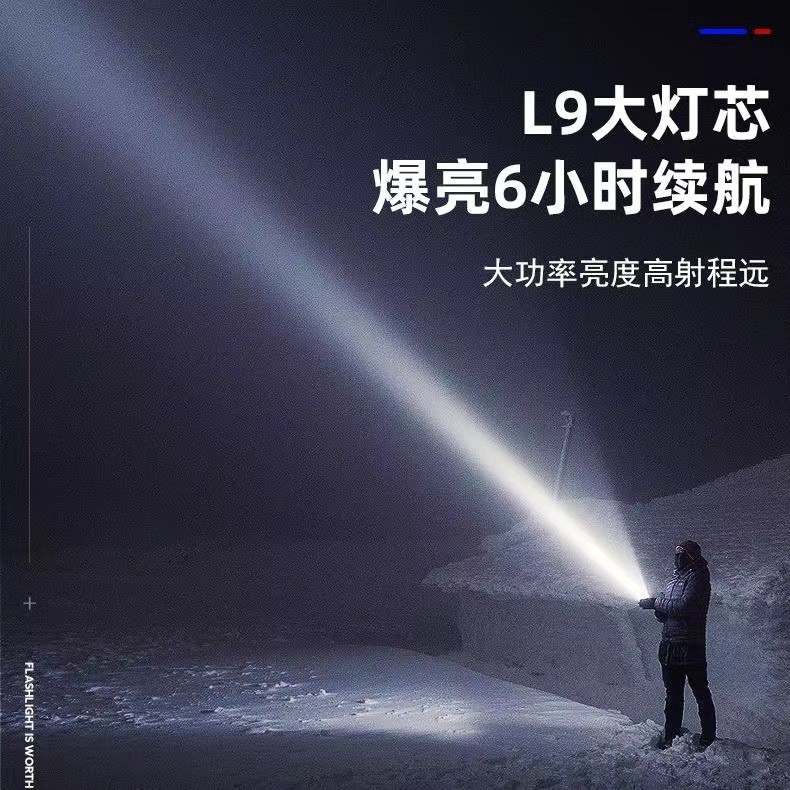 手电筒强光充电长续航家用户外耐摔变焦聚光便携超亮氙气照明灯