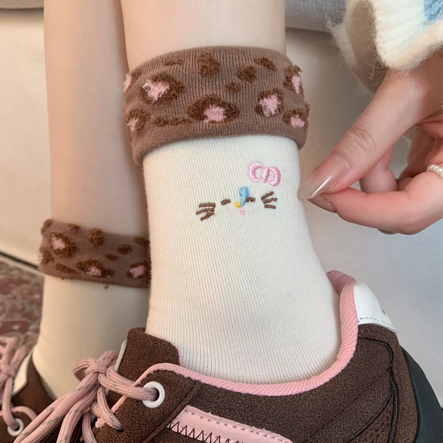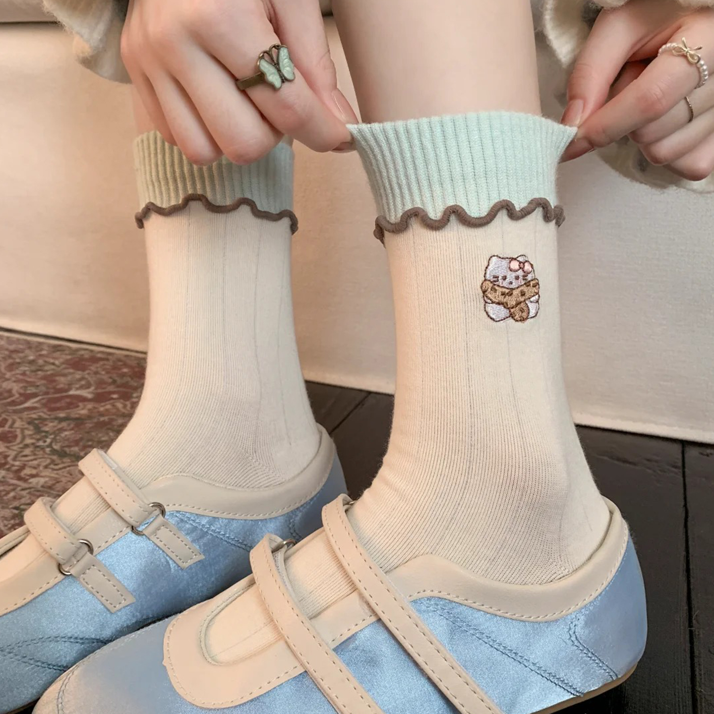 hellokitty袜子女款 袜子长筒袜 秋中筒袜白色堆堆袜子miu系勃肯鞋