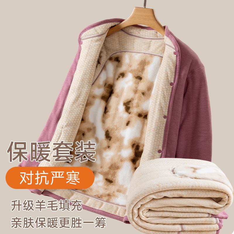 加绒加厚内搭中老年妈妈防寒保暖小棉袄套装 内胆棉衣棉裤 女士冬季