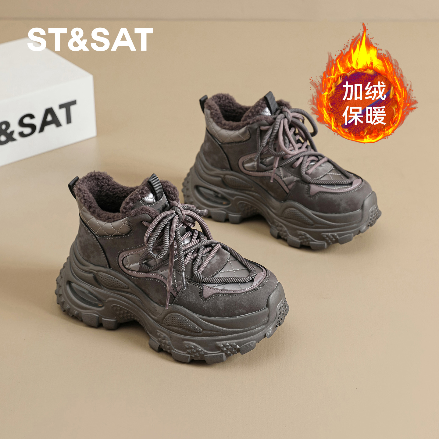 厚底高帮加绒休闲运动鞋 张凌赫同款 新款 女鞋 预 百丽蓝鲸银色老爹鞋
