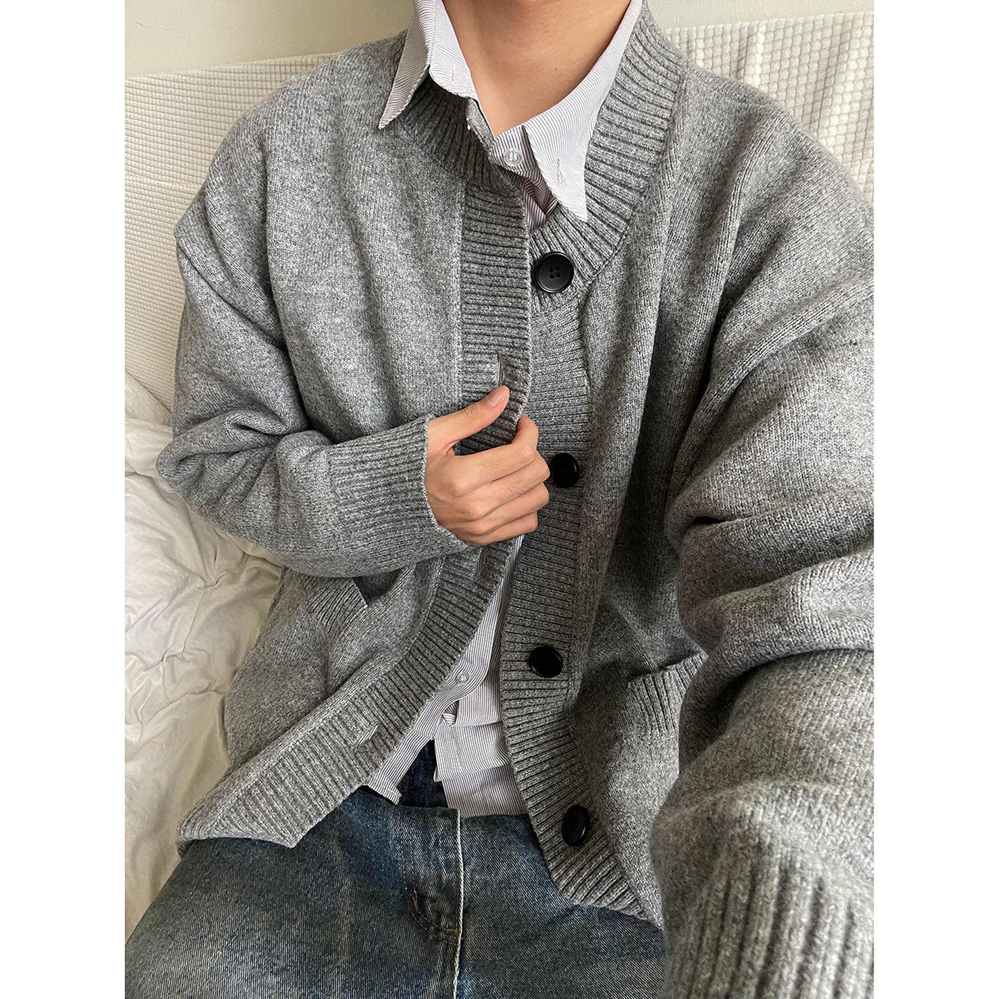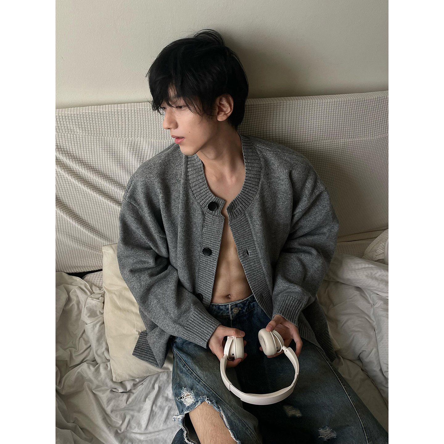 高级感内搭打底衫 cleanfit灰色开衫 复古慵懒针织衫 美式 毛衣男秋季