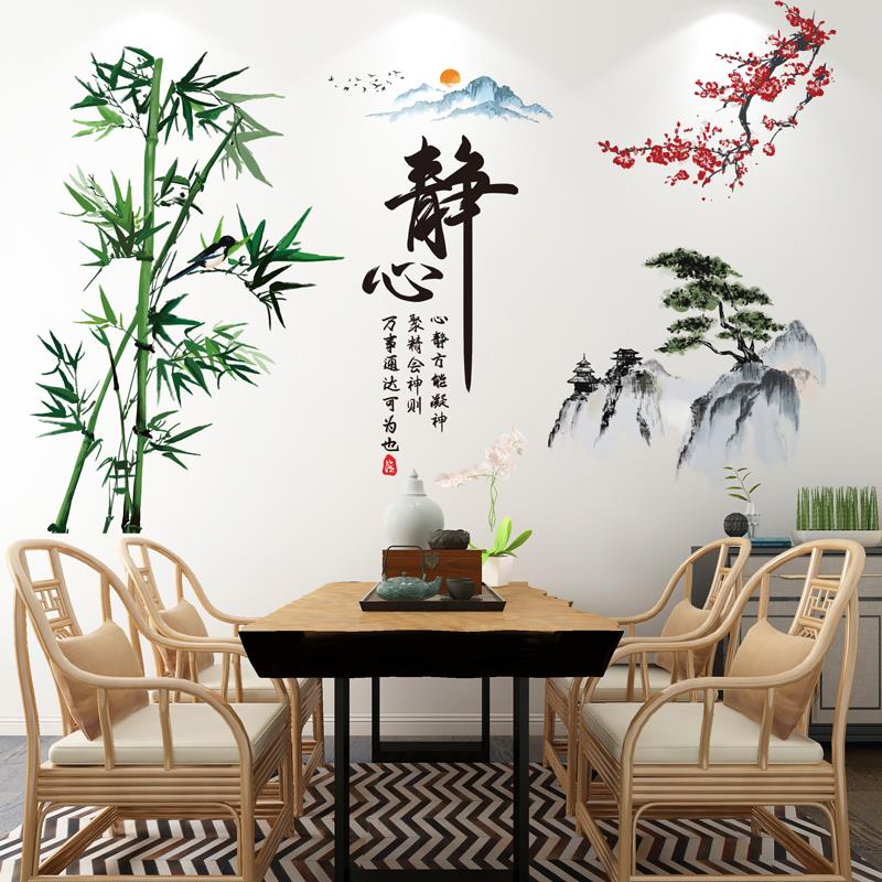山水画贴纸壁纸自粘客厅电视背景墙中国风新年竹子遮丑装 饰墙贴画