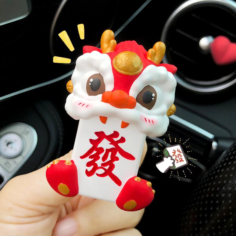 2025新款 饰吉祥物车内饰品礼物 发财醒狮车载香薰汽车空调出风口装