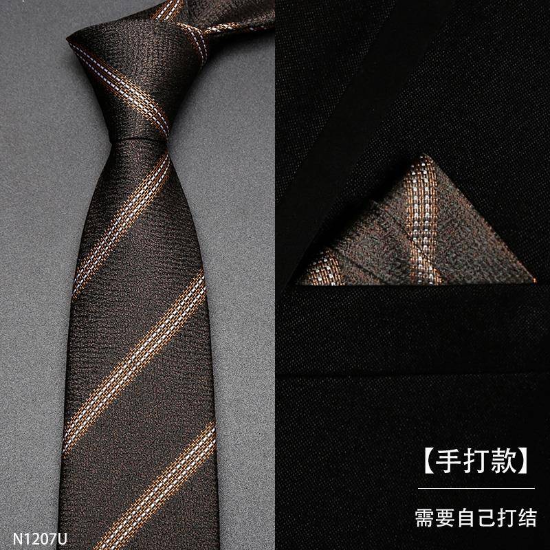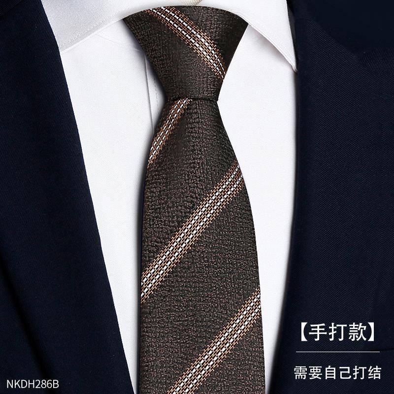 口袋1010r 商务棕色咖啡色条纹新郎结婚手打西装 男士 领带高端正装