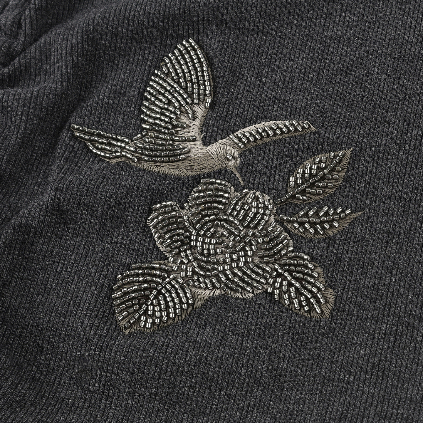 「魔法花园」钉珠刺绣假两件T恤 新款 UOOYAA 乌丫2025冬季