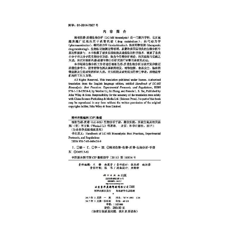 科学出版 9787030494269 液相色谱 生物分析手册.最佳实践.实验方案及相关法规 包邮 质谱 社 李文魁 正版