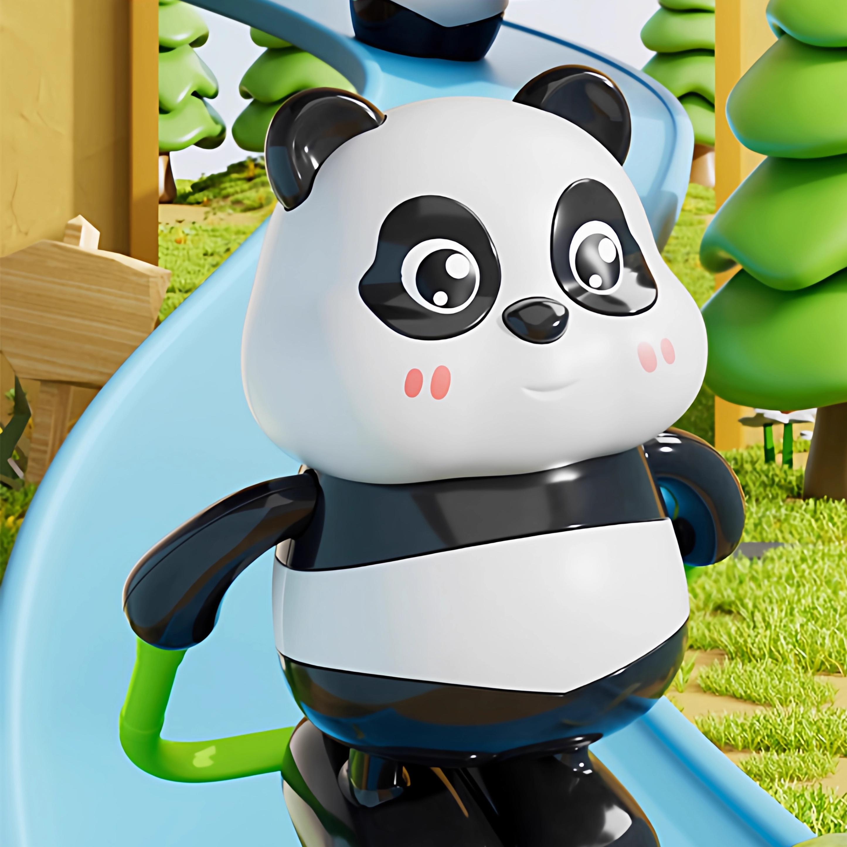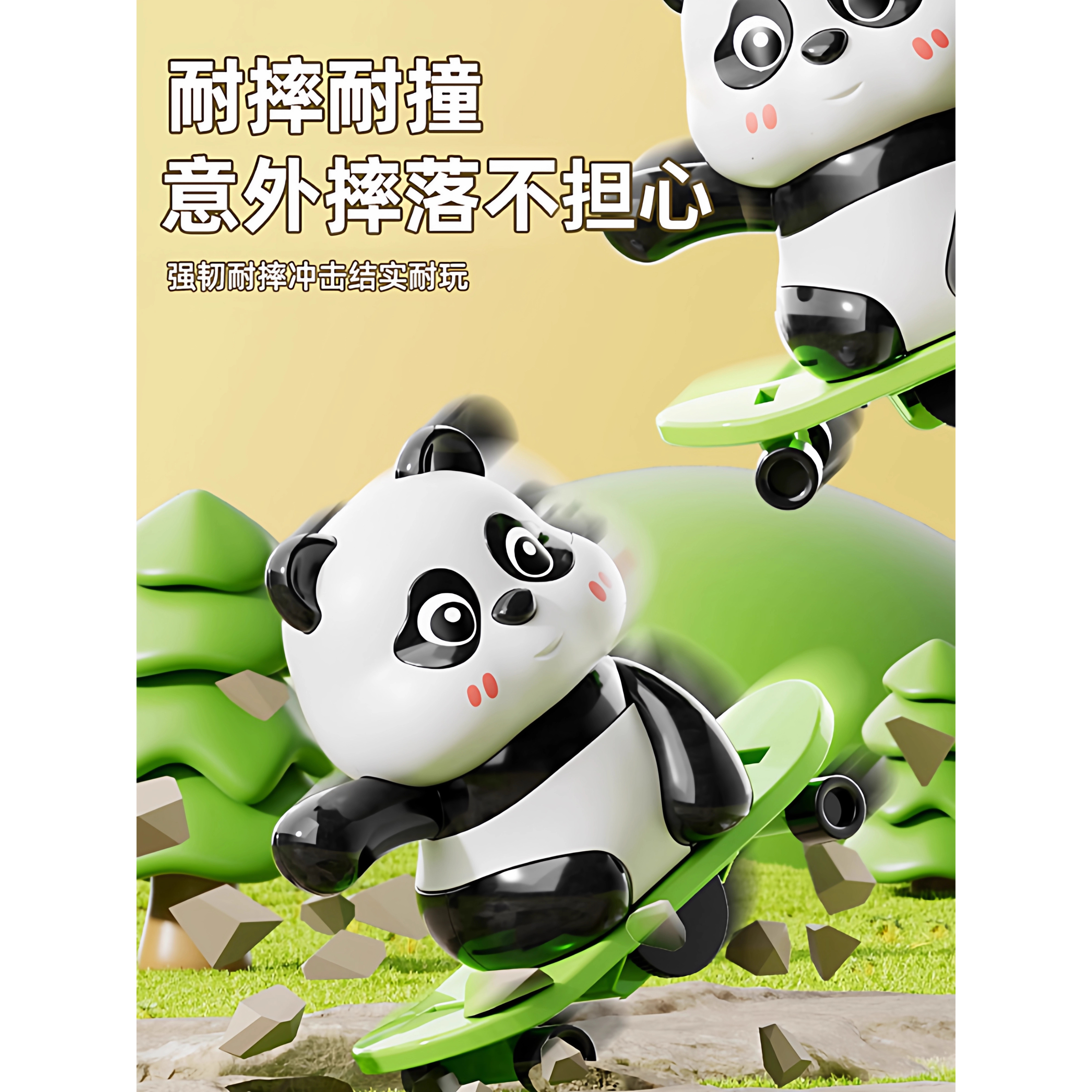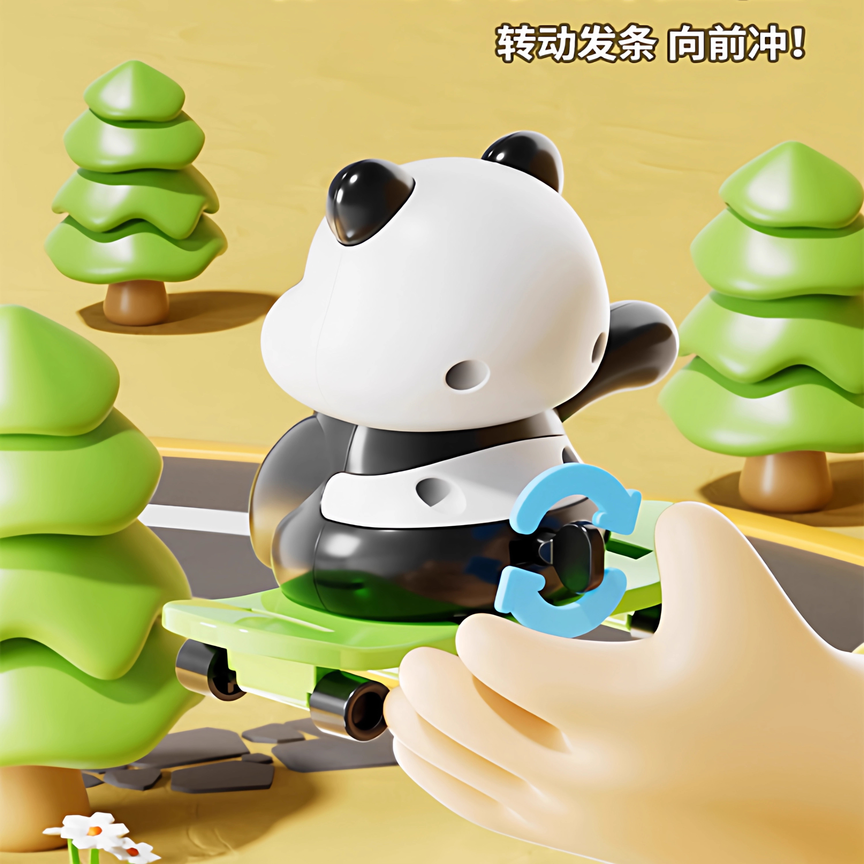 儿童国宝熊猫造型上链发条惯性动物宝宝1 3岁早教爬行玩具呼啦圈