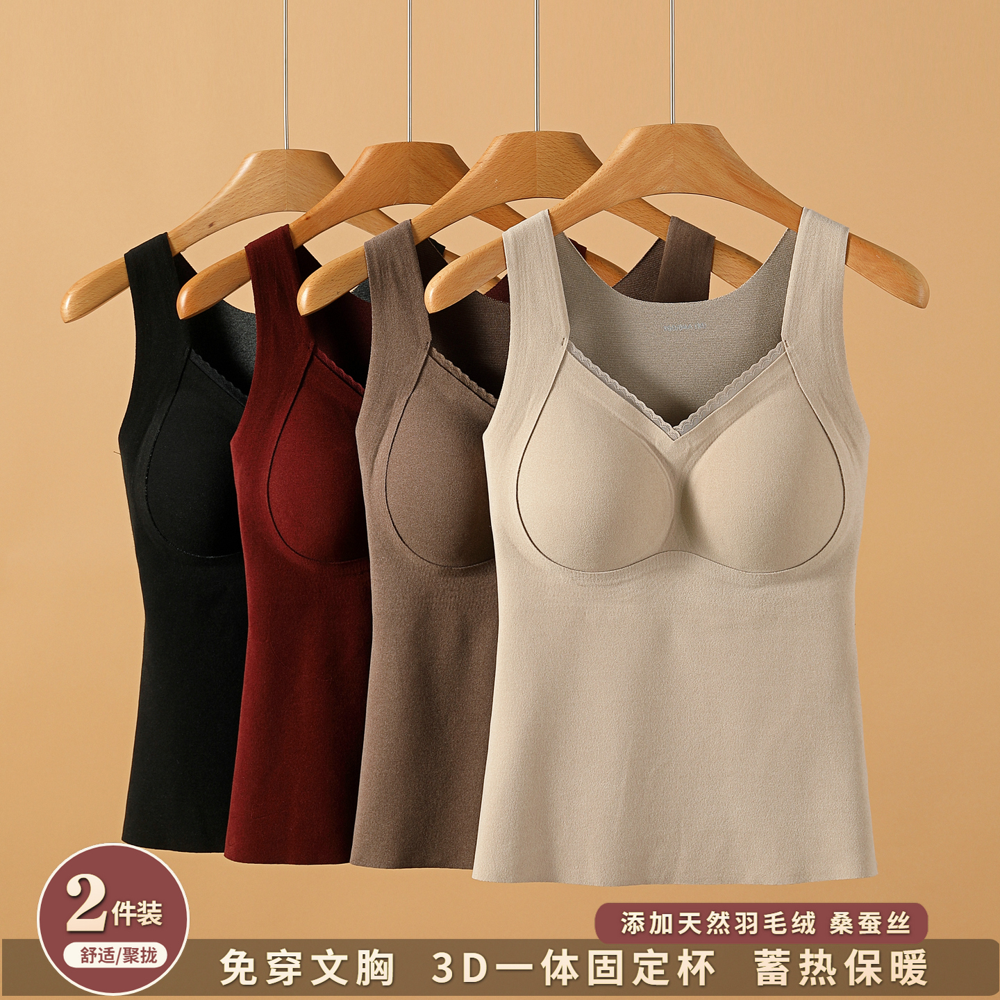 石墨烯保暖背心女上衣内搭2025冬加绒加厚带胸垫一体式 打底秋内衣