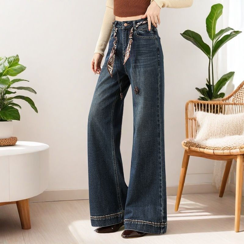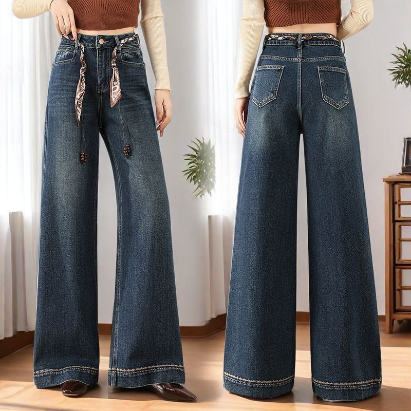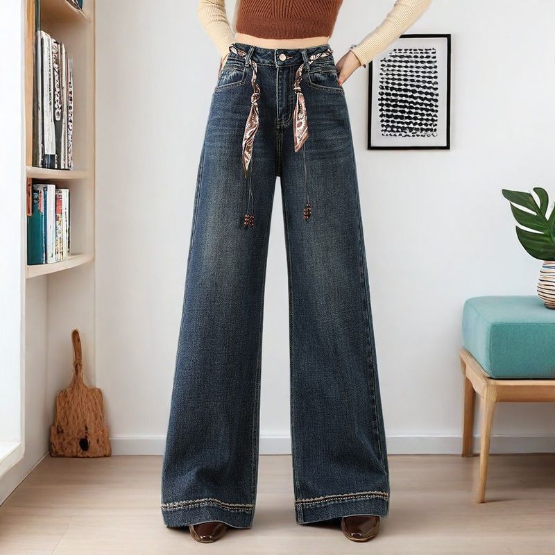显瘦宽松直筒牛仔裤 王家有鱼秋季 2025百搭修身 复古蓝阔腿裤 女 新款