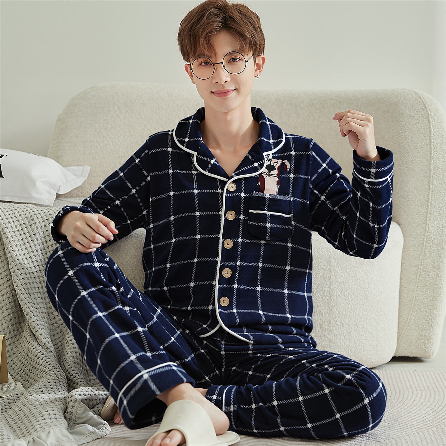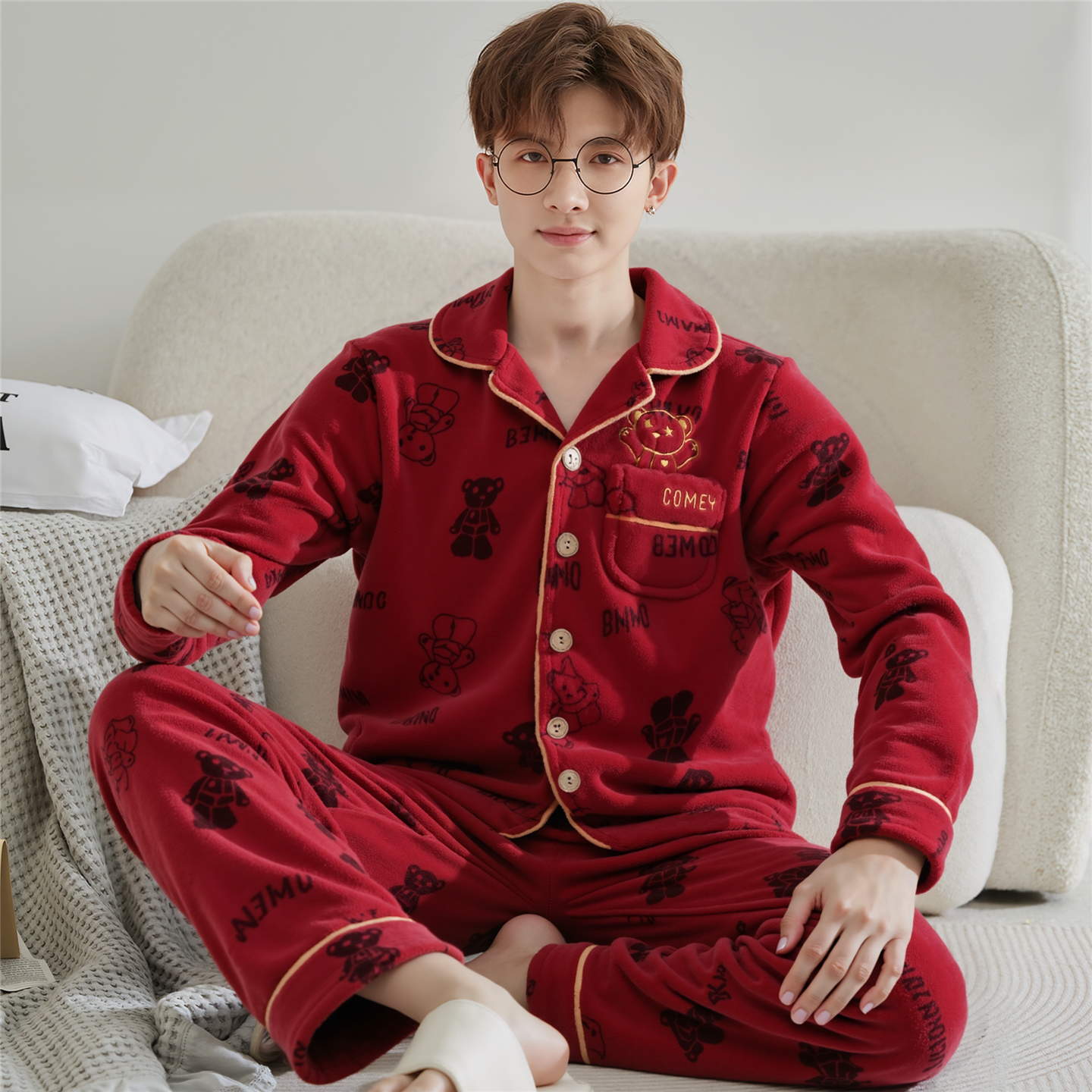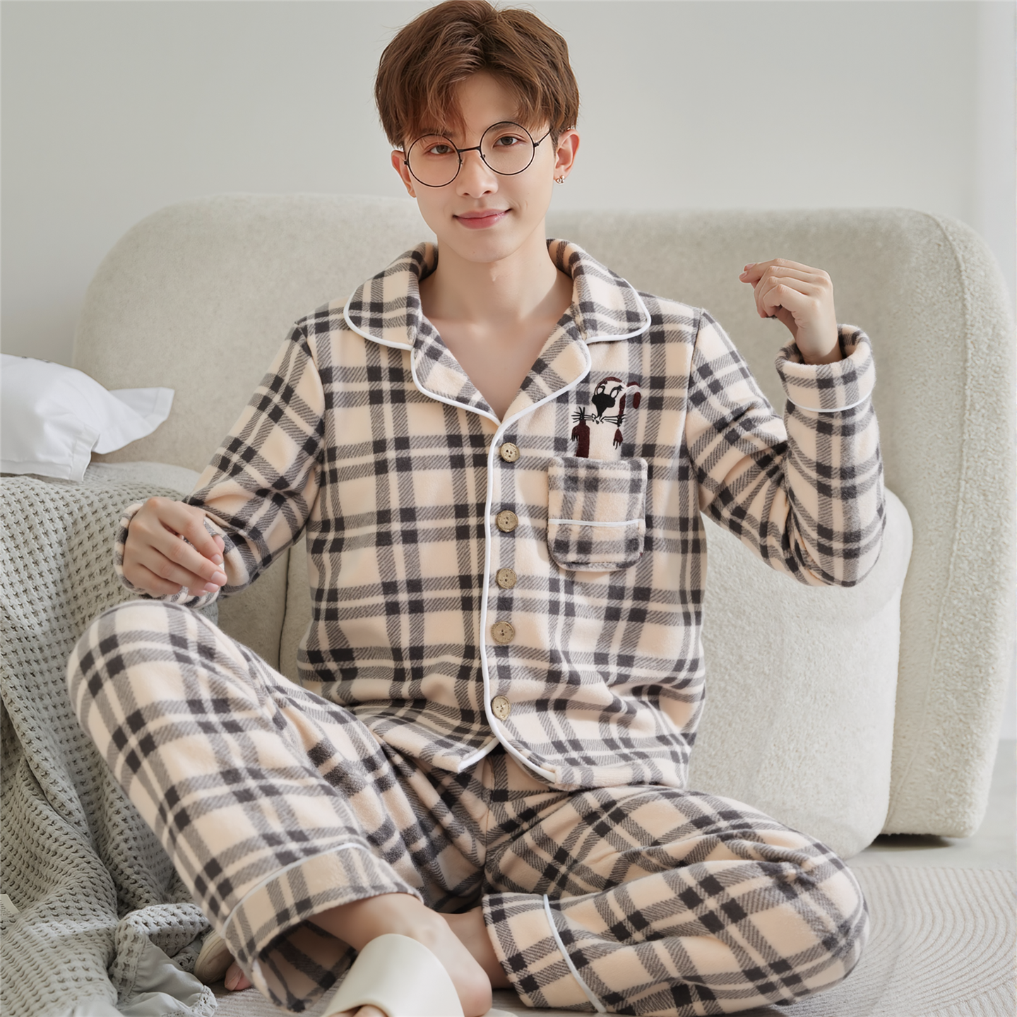珊瑚绒青少年初中高中学生法兰绒家居服套装 2025新款 睡衣男秋冬季