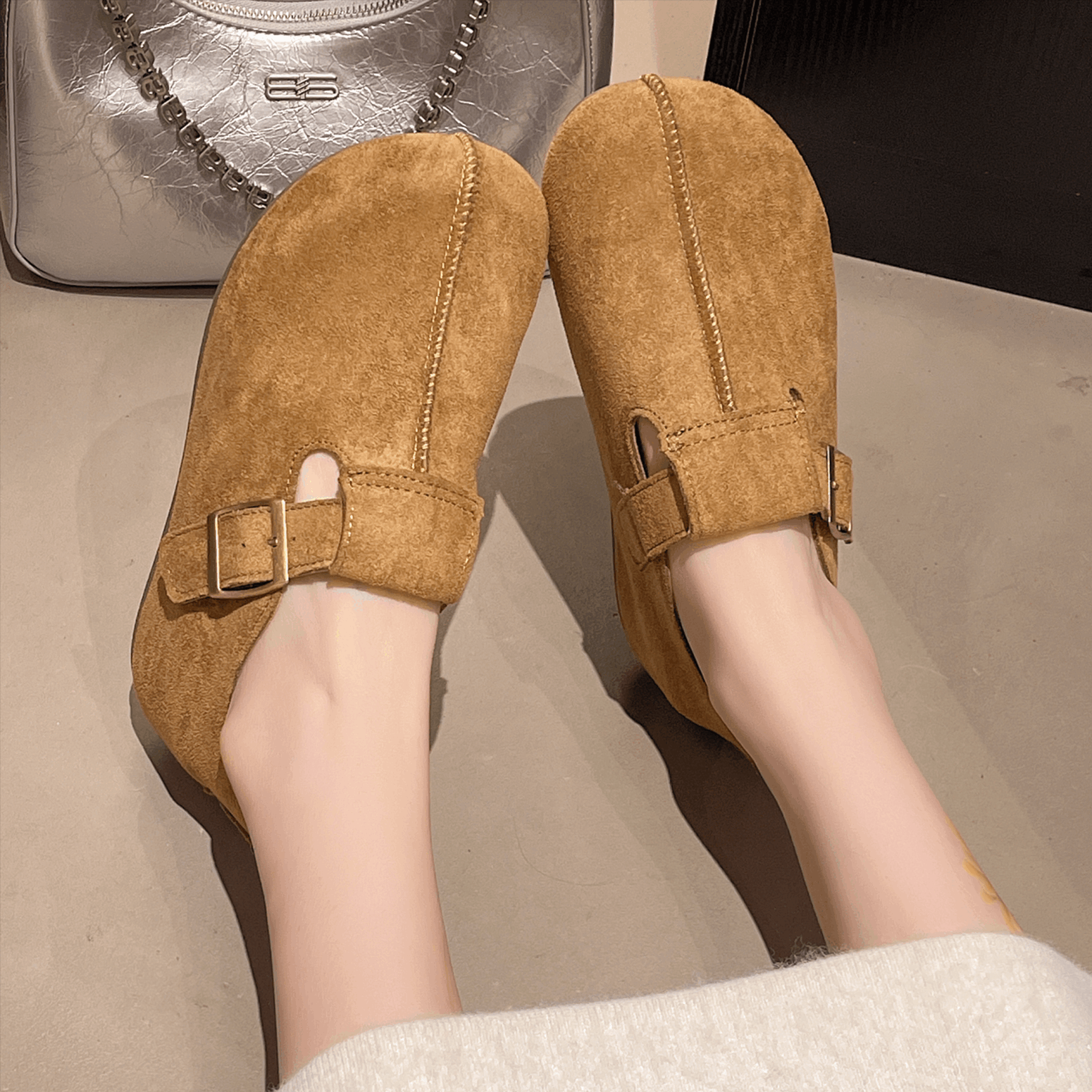 一脚蹬女鞋 博肯乐福单鞋 2025新款 豆豆鞋 秋季 厚底内增高全包勃肯鞋