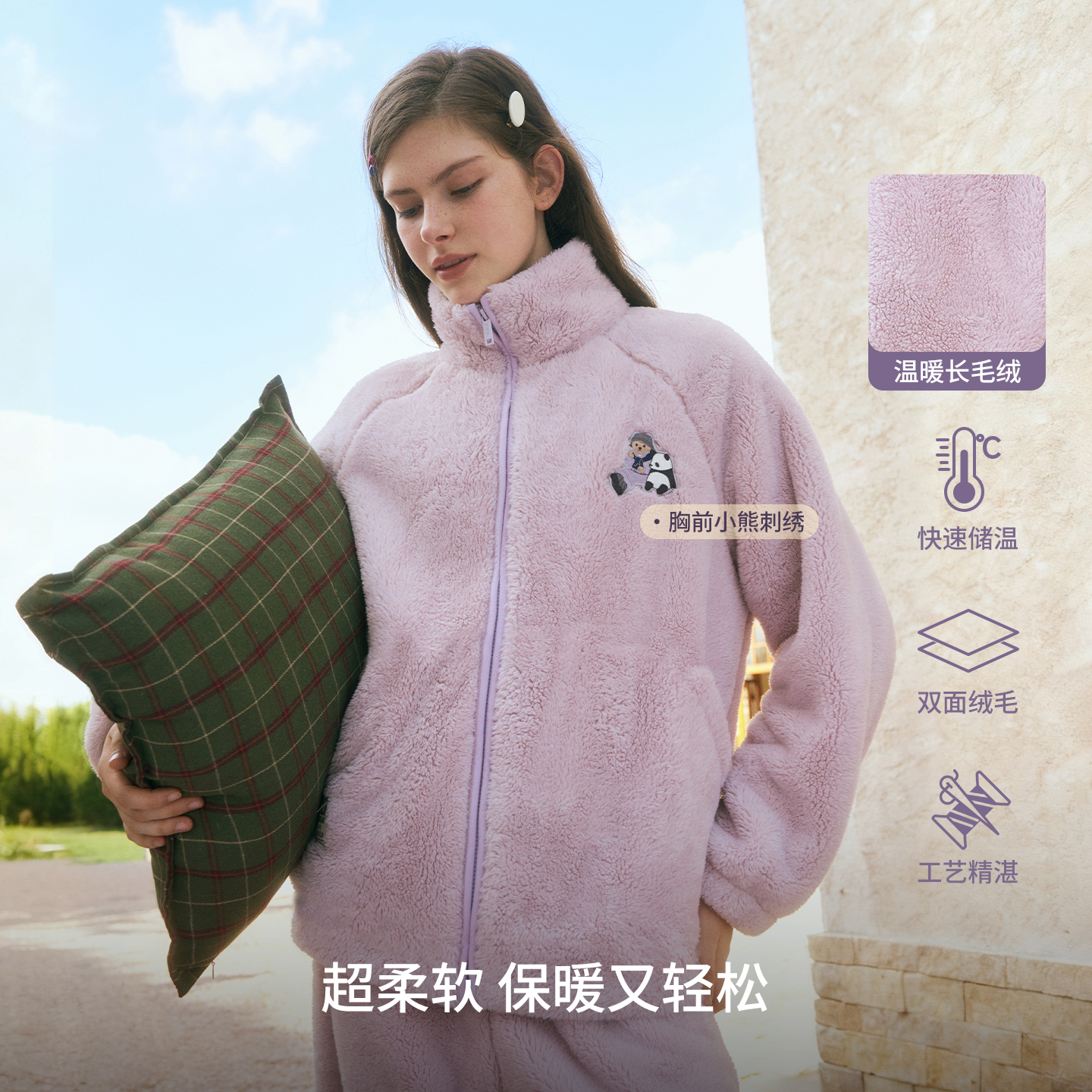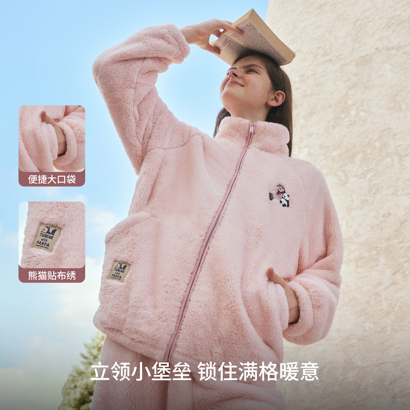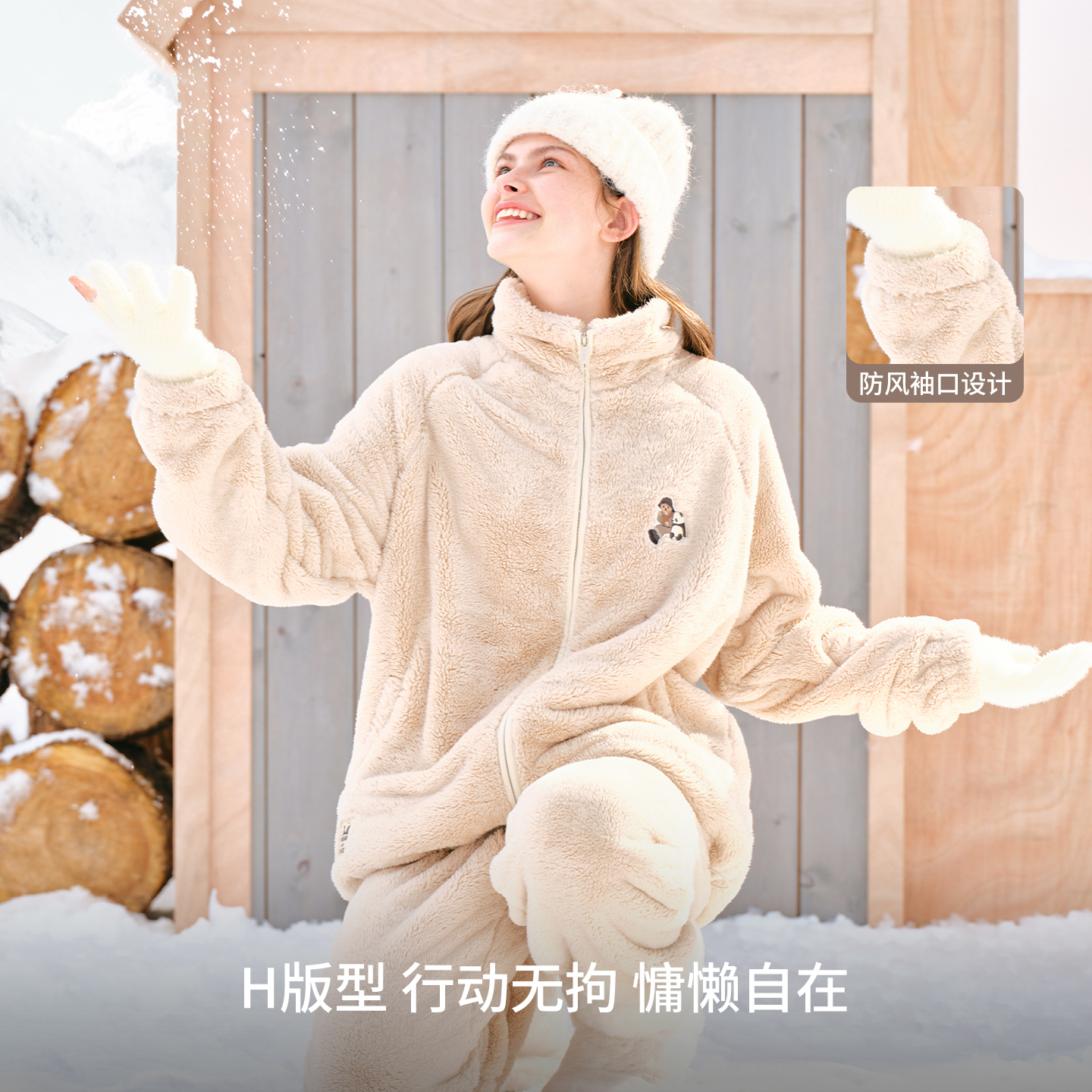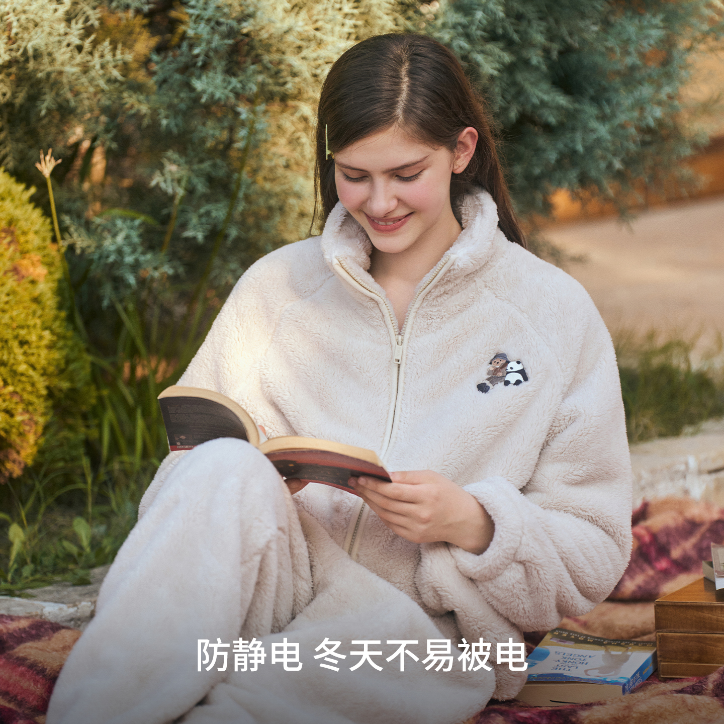 红豆珊瑚绒睡衣女羊羔绒抗静电加厚桂花绒甜美保暖外穿家居服套装