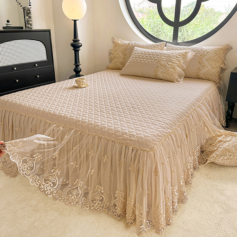 宫廷风纯棉床裙四件套轻奢刺绣蕾丝花边夹棉床罩公主纯棉被套高档