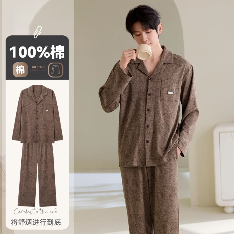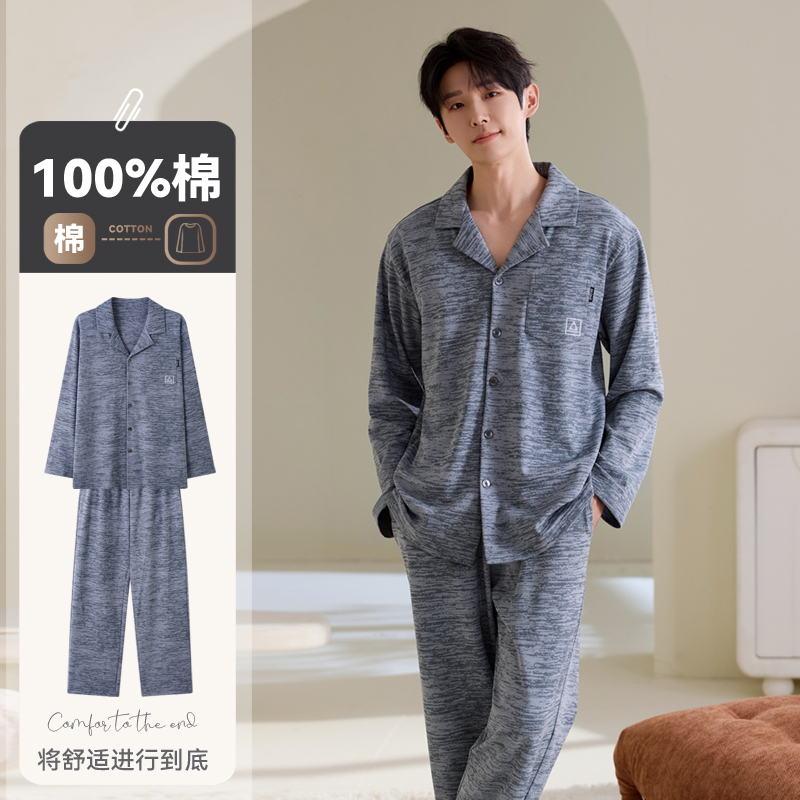 睡衣男士 青少年家居服2025新款 春秋季 秋冬款 长袖 帕兰朵纯棉男款