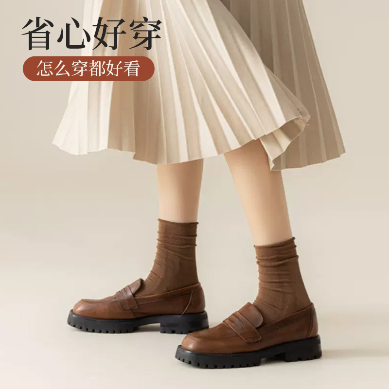 纯色秋冬中筒袜配小皮鞋 爆款 秋冬纯色堆堆袜2024新款 雅鹿袜子女款