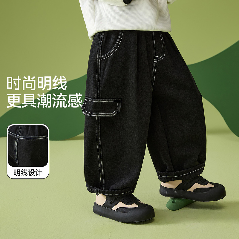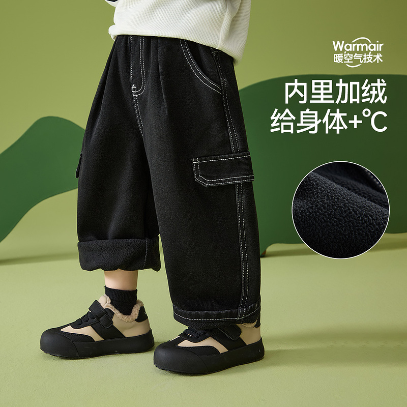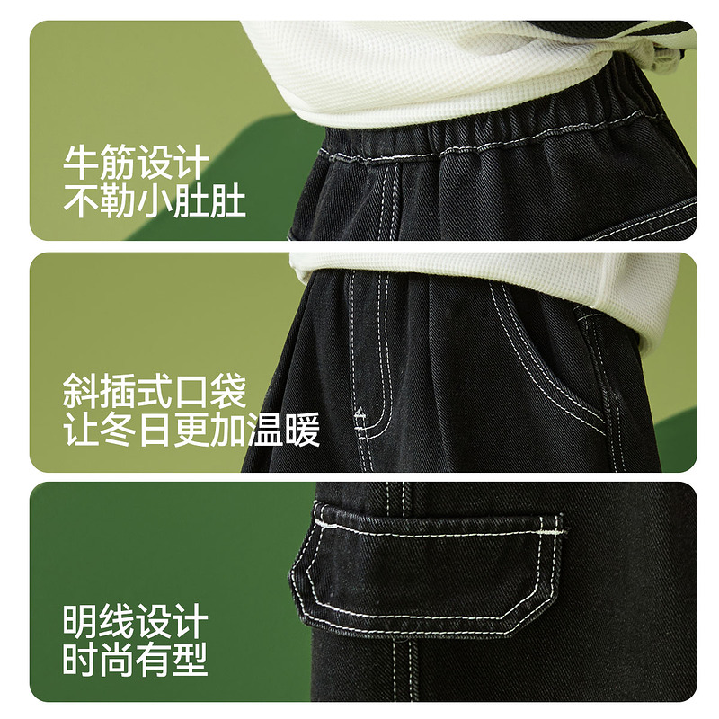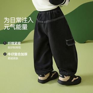 加绒裤 儿童秋冬季 子小男孩直筒裤 宝宝长裤 男童牛仔裤 冬装 2025新款
