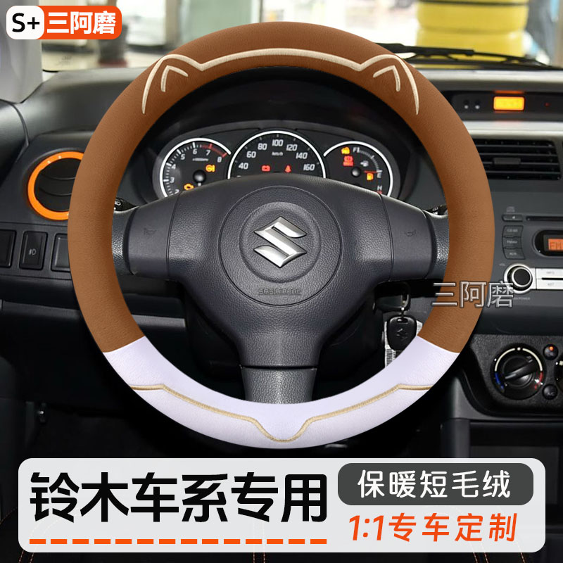 适用铃木雨燕天语sx4奥拓锋驭北斗星维特拉启悦毛绒方向盘套冬季