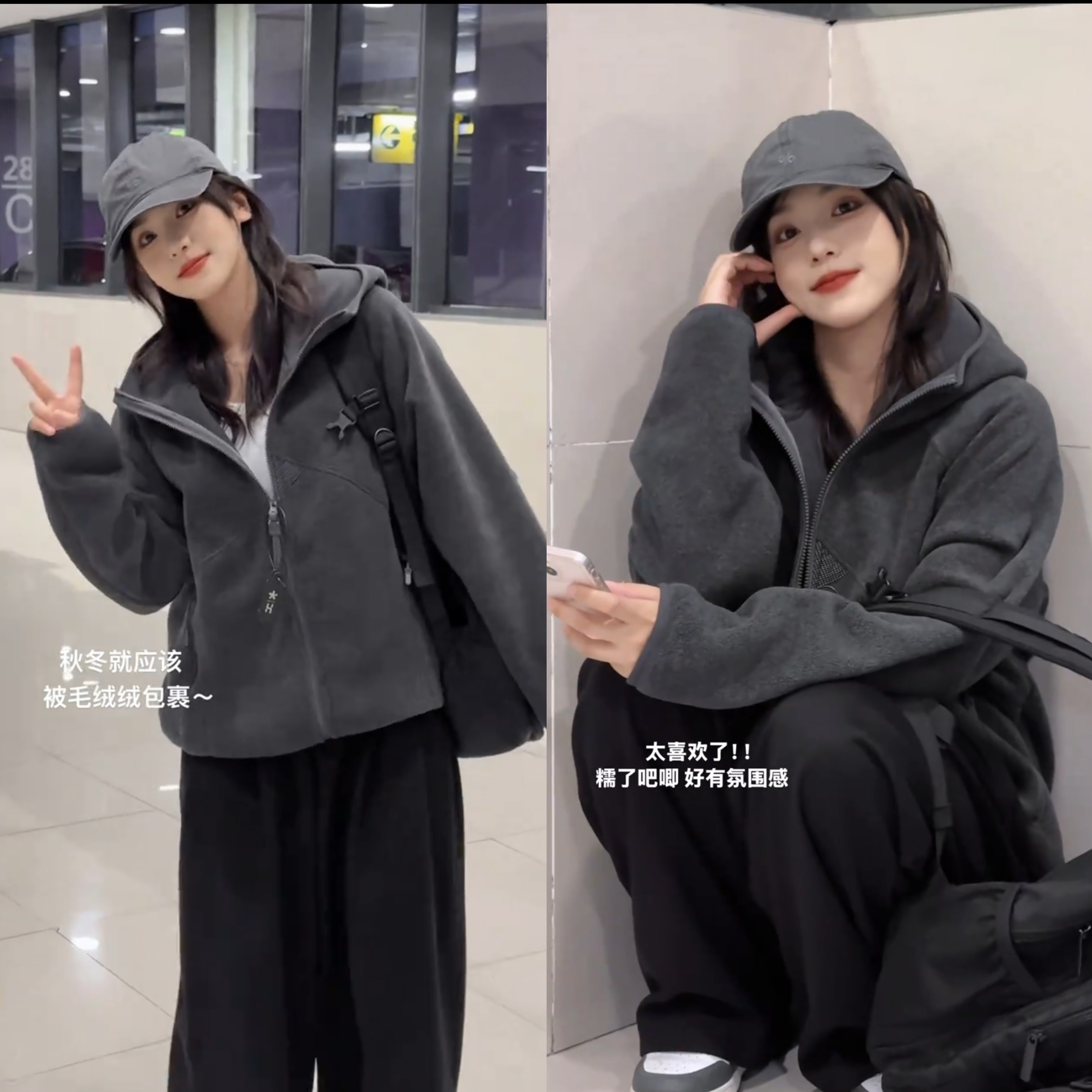 冲锋运动风衣夹克女装 女士加绒软壳修身 秋冬新款 鸿星尔克外套女款