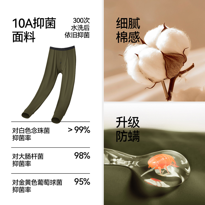秋冬10A抗菌线裤 纯棉2025新款 男修身 线裤 防螨 森马男士 打底裤 秋裤