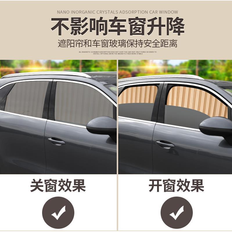 车窗遮阳帘磁吸式 伸缩防晒隔热车用窗帘通用 抗UV遮阳挡轨道式