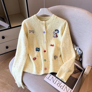针织开衫 修身 女秋季 休闲短款 显瘦圆领毛衣外套 新款 紫涵渐变色短款