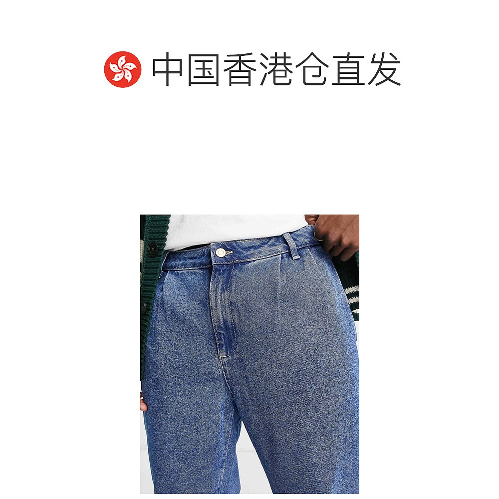 女 做旧复古皮牌斜插高腰松弛显瘦宽松直筒牛仔裤 ONLY2025冬季 新款