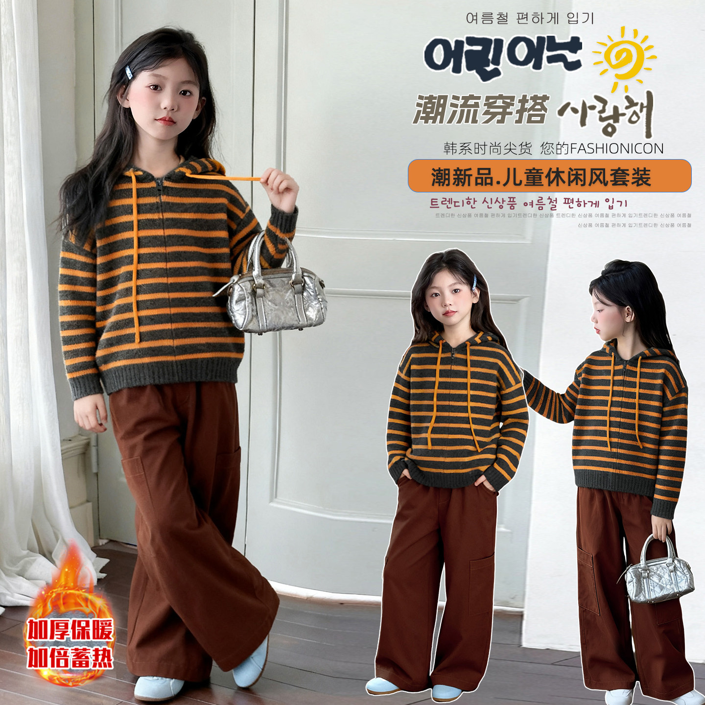 刺绣设计感宽松针织衫 新款 上衣 女2025秋季 紫涵圆领假两件毛衣开衫