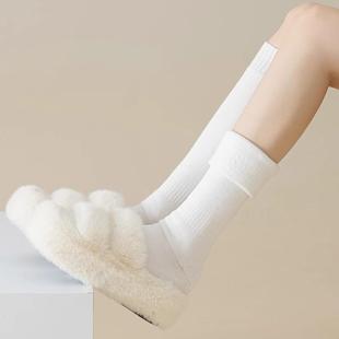 10A抗菌白色袜子女春秋纯棉中筒袜防臭堆堆无骨月子长筒袜秋冬季