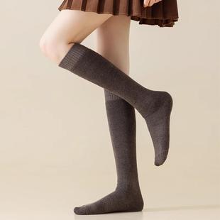 小腿袜子女纯棉春秋季 高筒咖色及膝袜半筒 压力袜套长筒全棉秋冬款