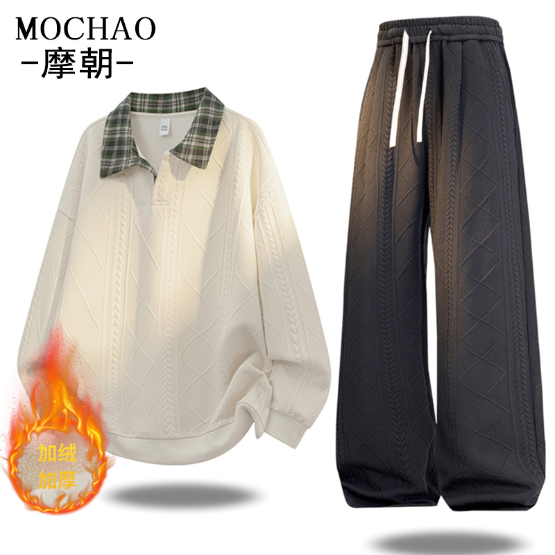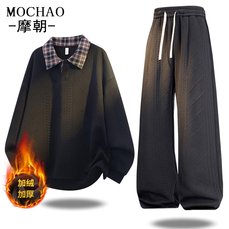 休闲加绒保暖外套卫衣卫裤 特步运动套装 新款 秋季 运动服两件套 男款