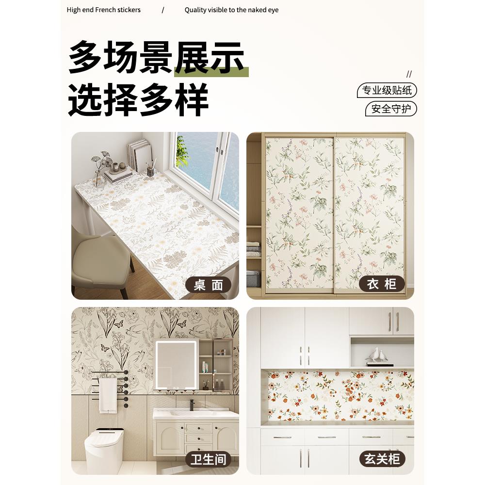 法式 复古柜子贴纸家具翻新衣柜柜门改造遮丑贴画自粘防水防潮墙纸