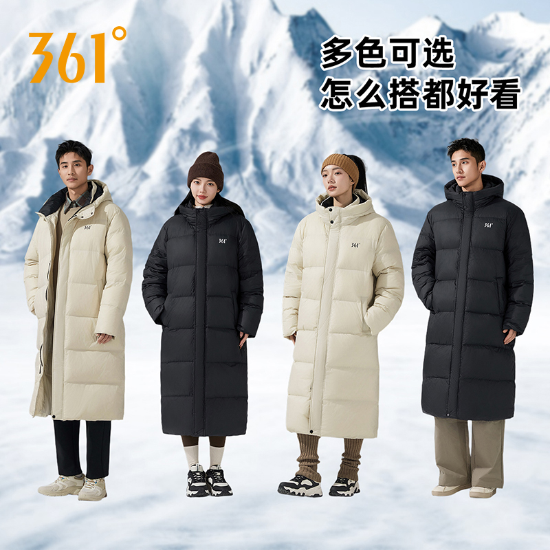 准者运动羽绒服男女长款 过膝冬防风加绒加厚保暖户外休闲连帽外套