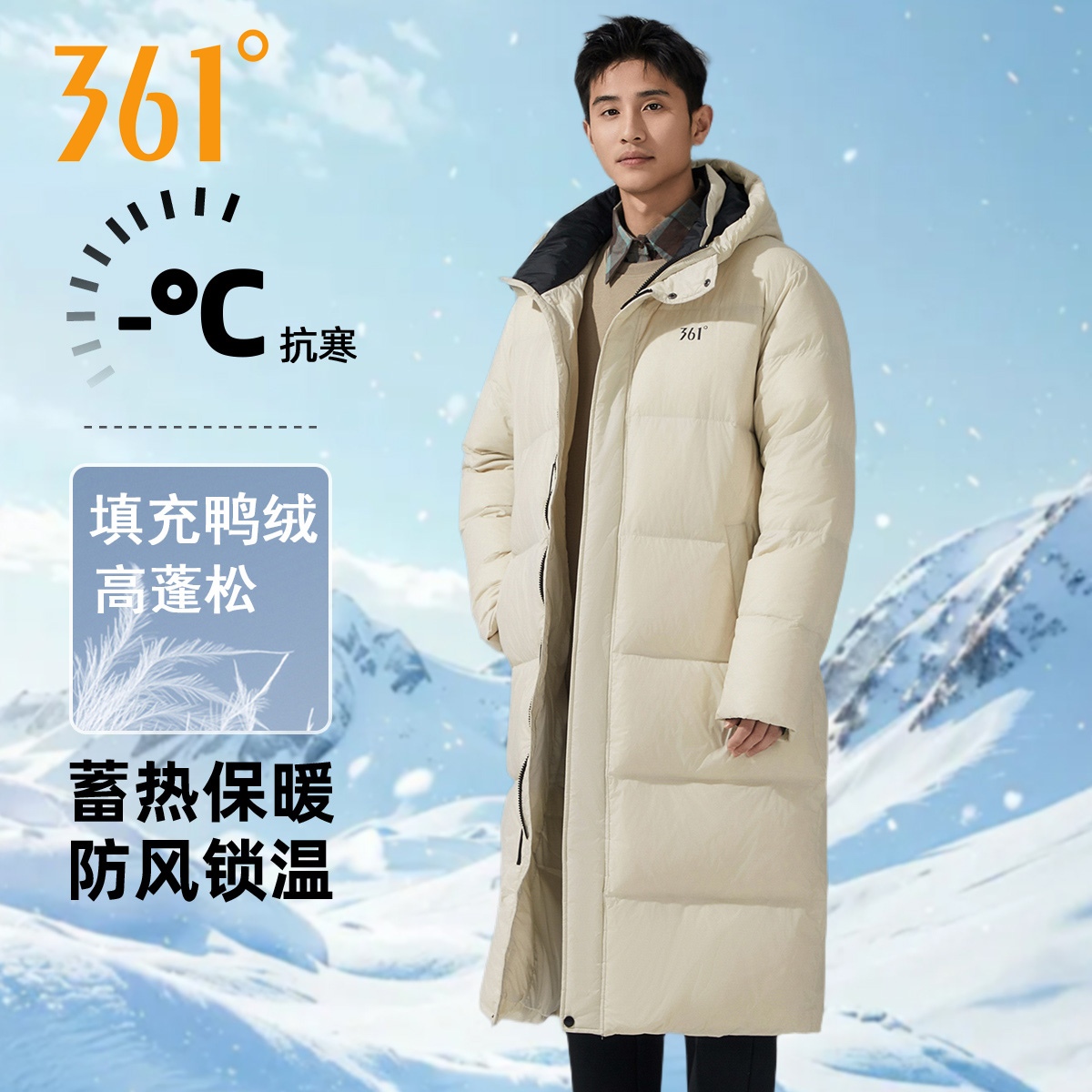 新款 2025冬季 鸭绒保暖棉服防寒加厚外套 运动羽绒服男士 安踏中长款