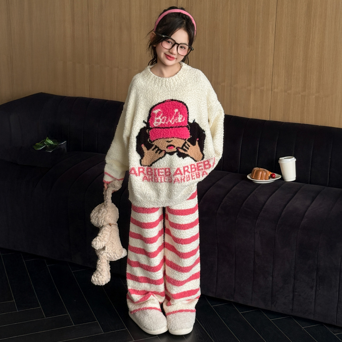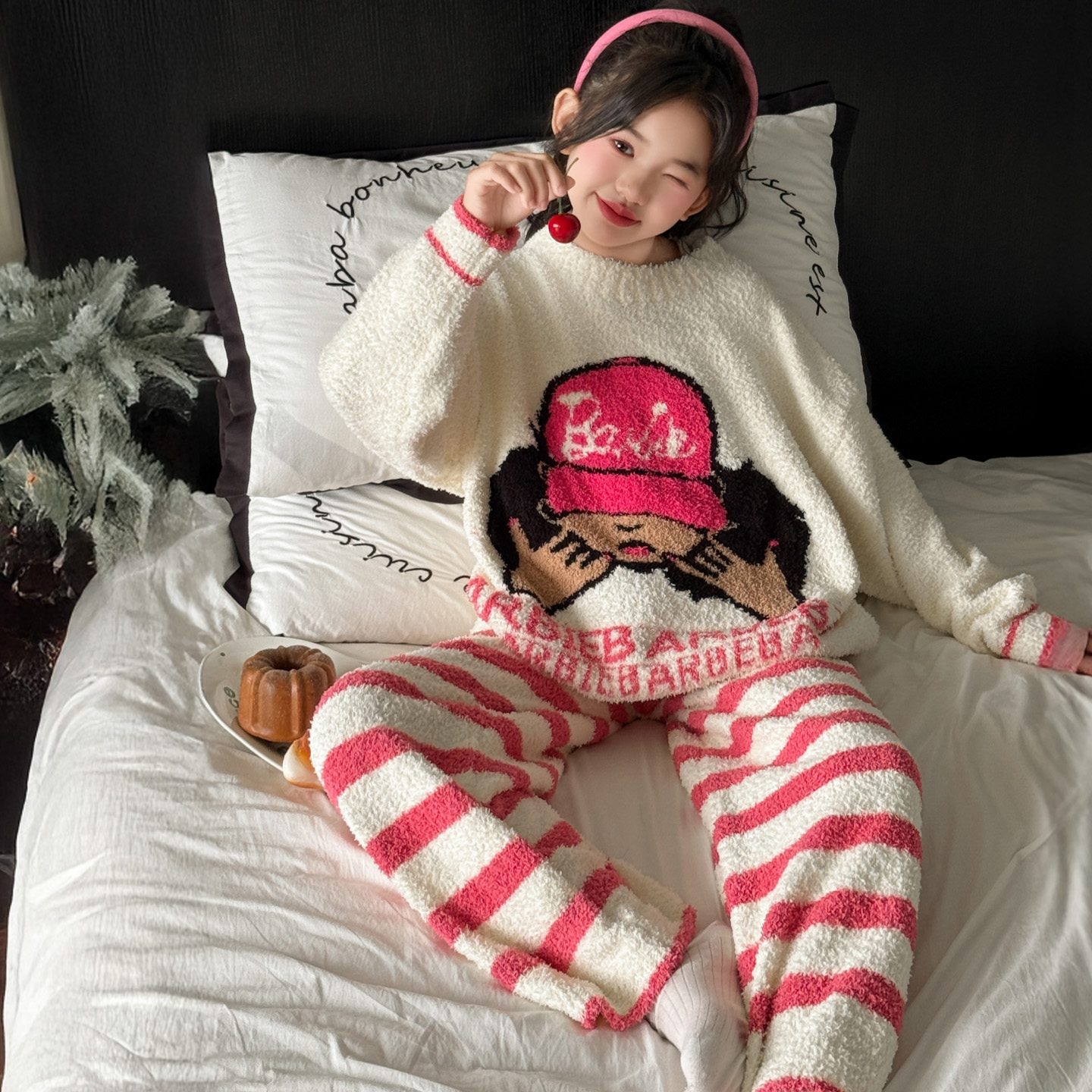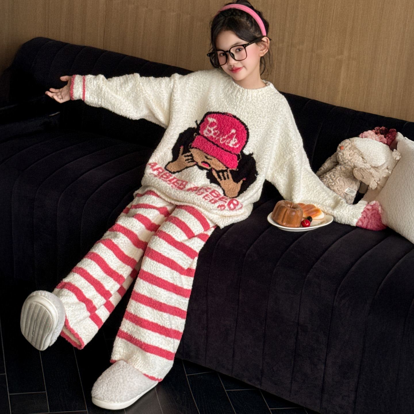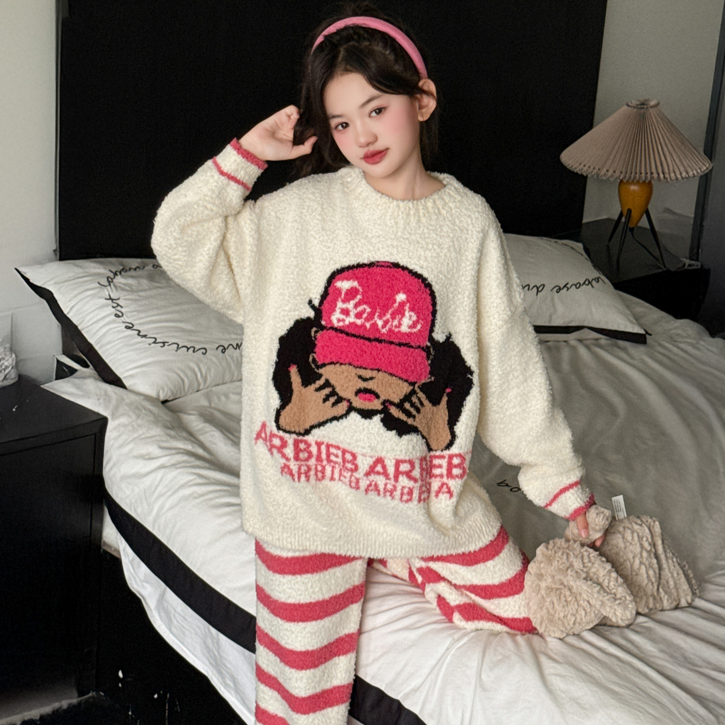 珊瑚绒套装 女童半边绒睡衣2025新款 儿童超好看家居服大童女孩冬季
