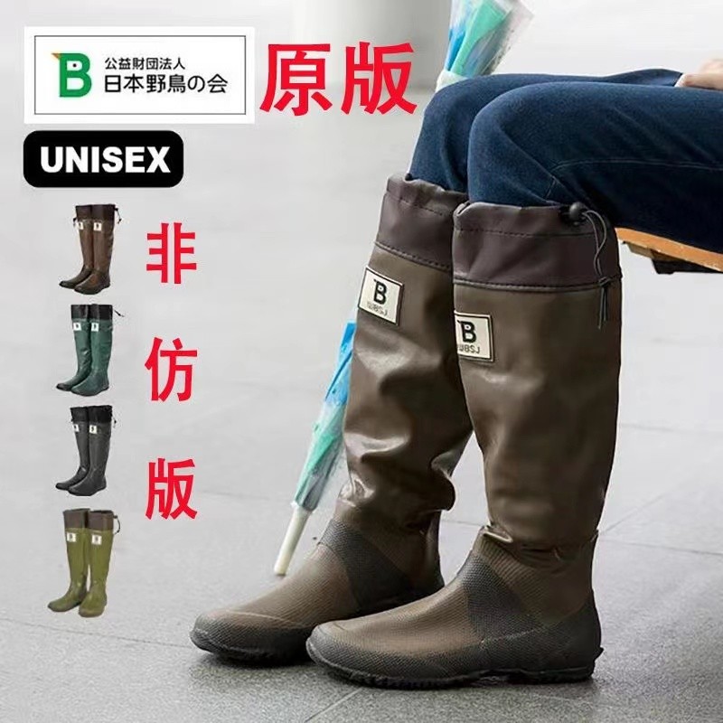日本野鸟协会复古WBSJ露营时尚 女 户外高筒情侣雨靴可折叠雨鞋