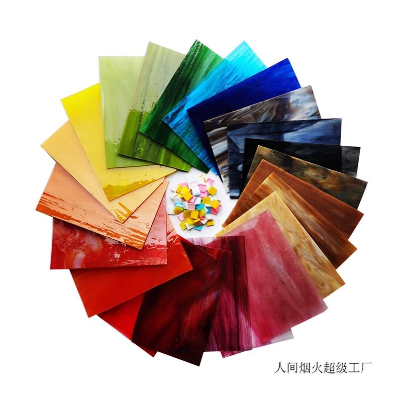 diy彩色玻璃 饰碎片马赛克 大片彩玻云母片壁画蒂凡尼灯透光教堂装