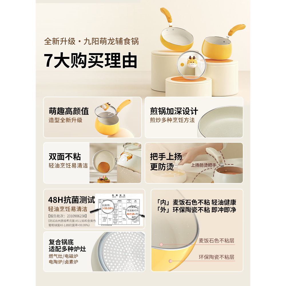 九阳婴儿辅食锅不粘奶锅宝宝专用多功能煎煮牛奶锅煮面奶锅婴儿