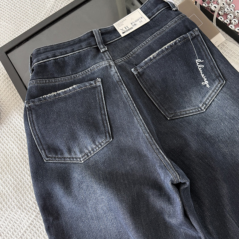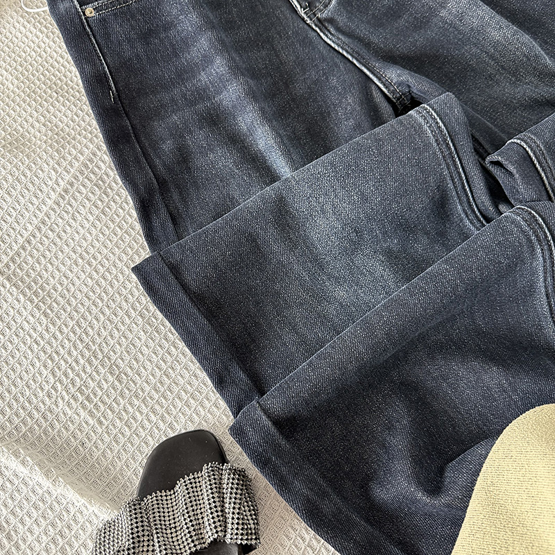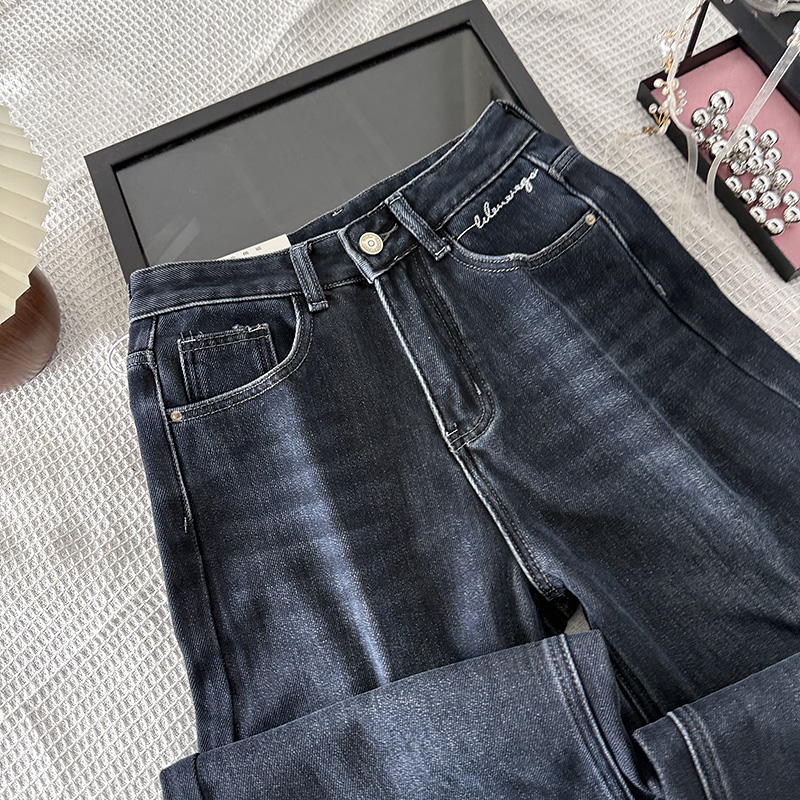 子 宽松百搭直筒长裤 韩系毛巾底柔软加绒高腰牛仔裤 女2025秋冬新款