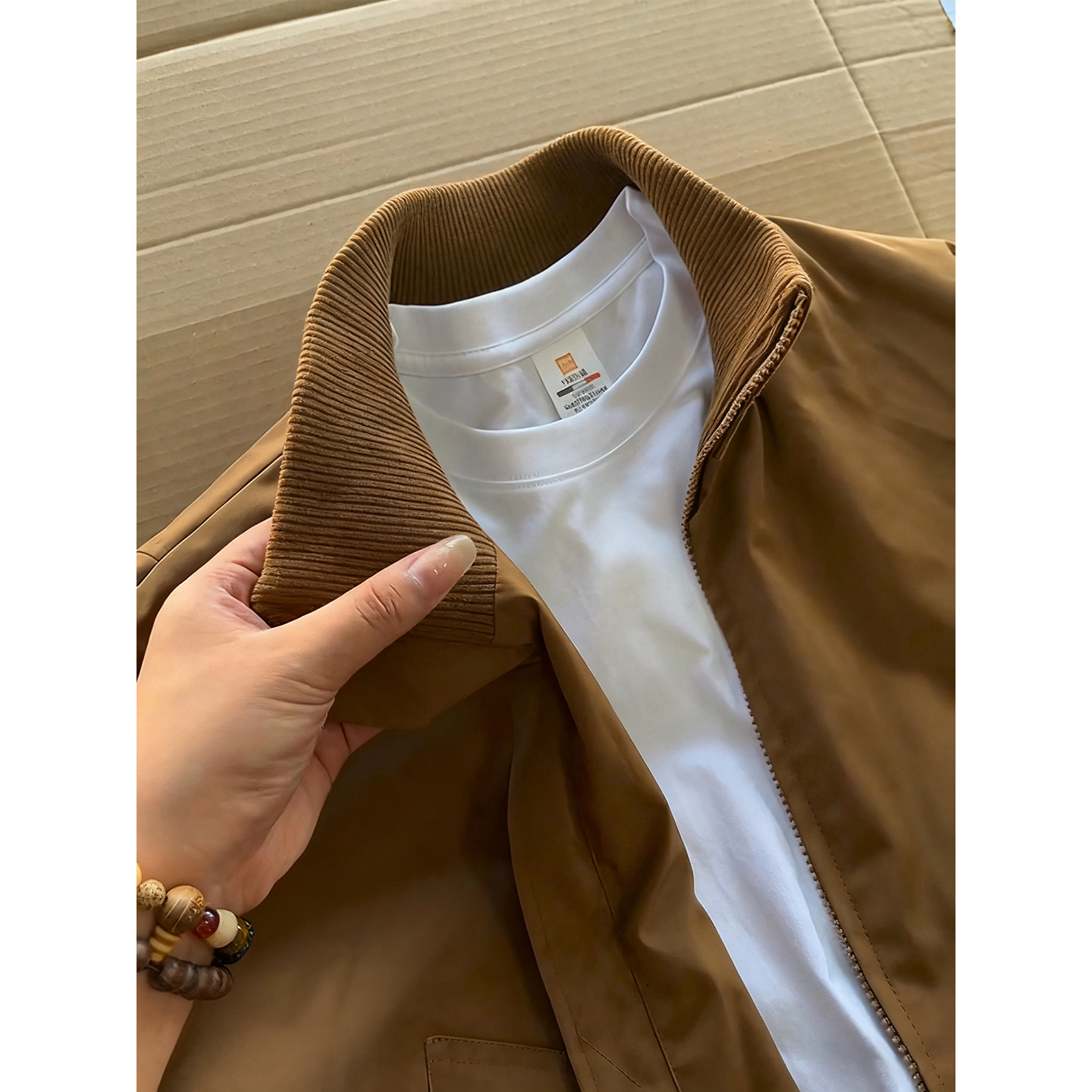 穿搭短款 秋季 飞行夹克cleanfit立领棒球服 外套男款 美拉德棕色美式