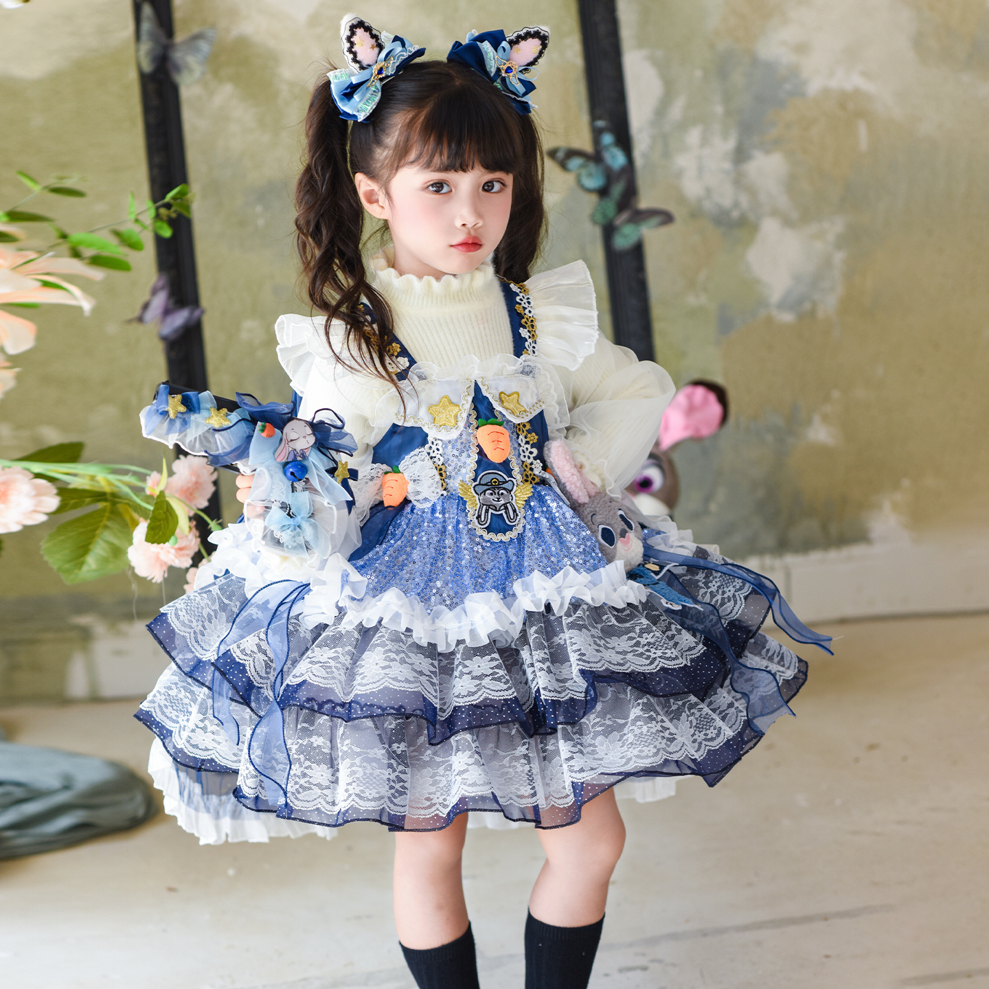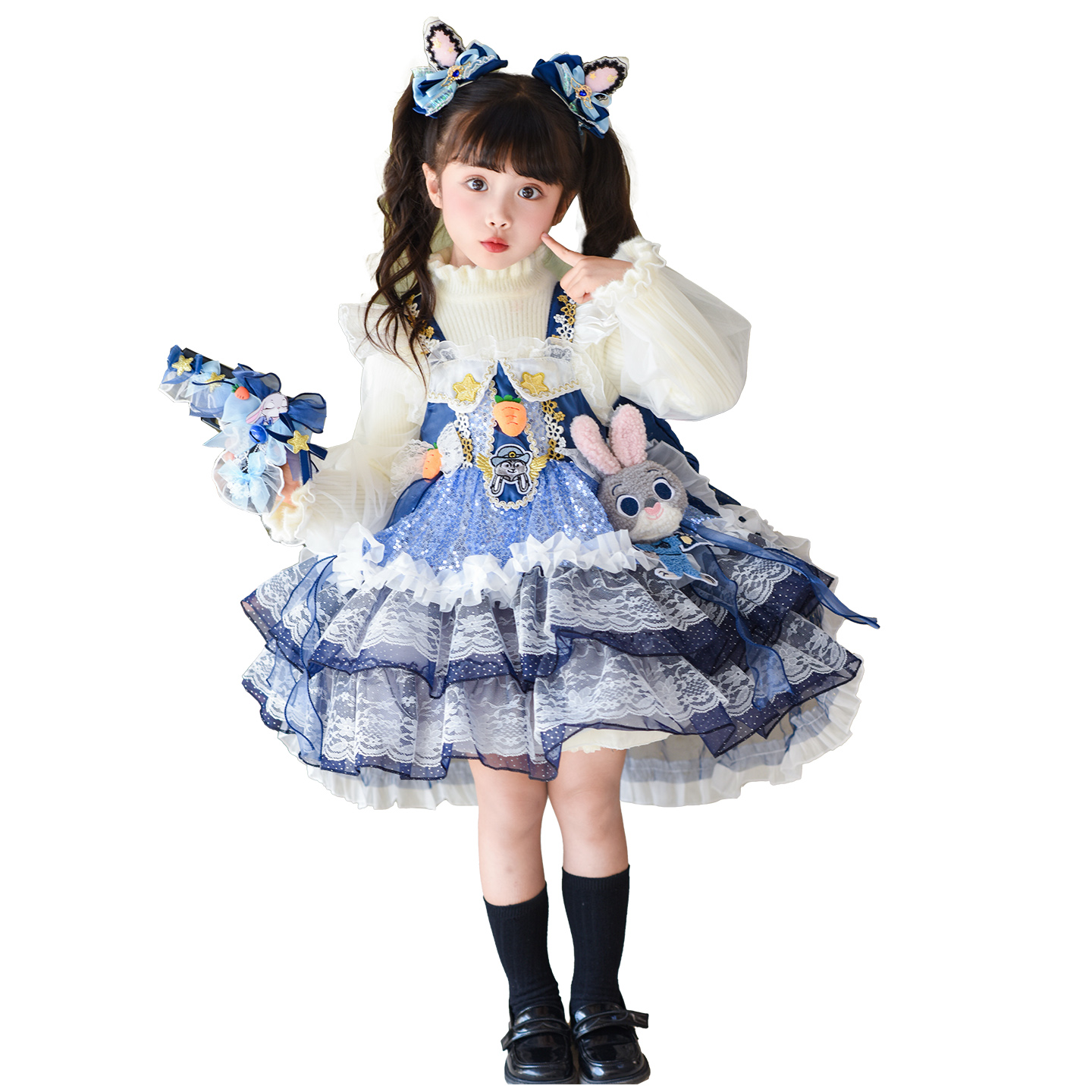 朱迪兔子警官女童秋冬连衣裙2025新款 万圣节女宝宝洛丽塔公主裙