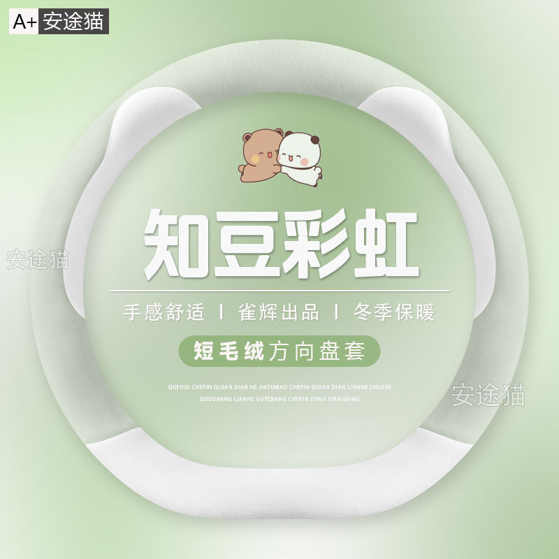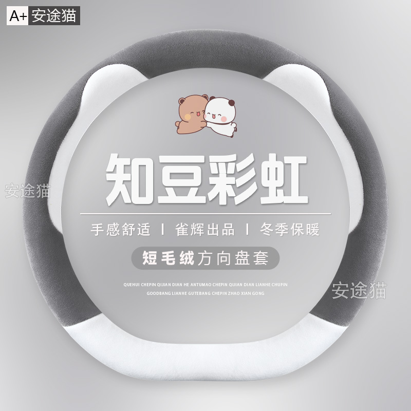 2025款 短毛绒免缝保暖汽车把套可爱小熊冬女 知豆彩虹方向盘套冬季