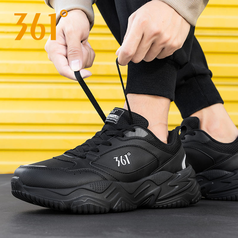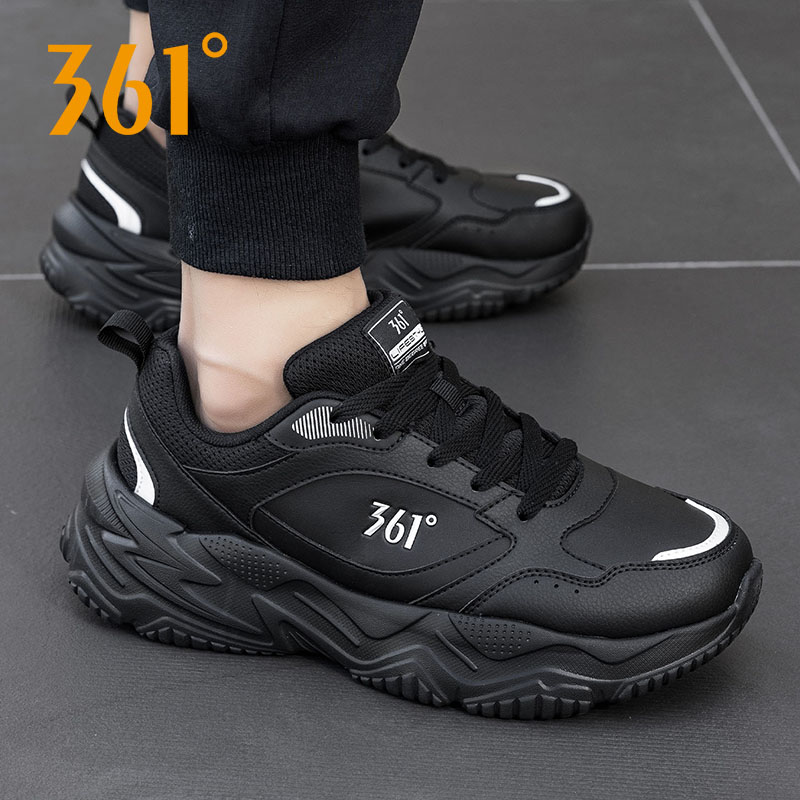 皮面跑步鞋 黑色防水休闲运动鞋 冬季 厚底老爹鞋 男 2025新款 361男鞋