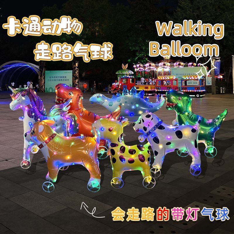 国庆节摆摊发光动物立体气球走路带轮子气球卡通儿童装 饰场景布置