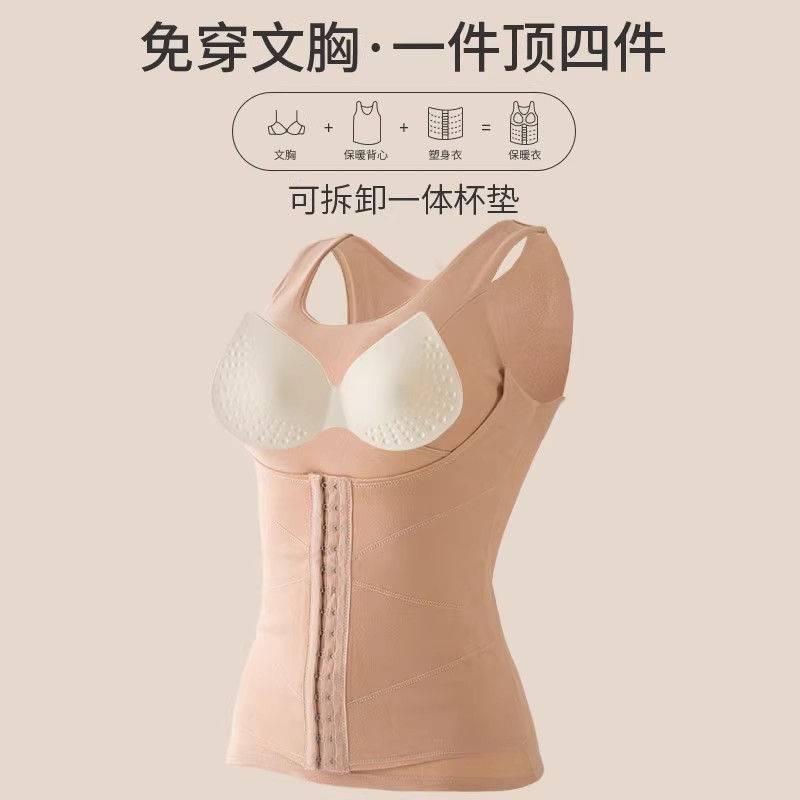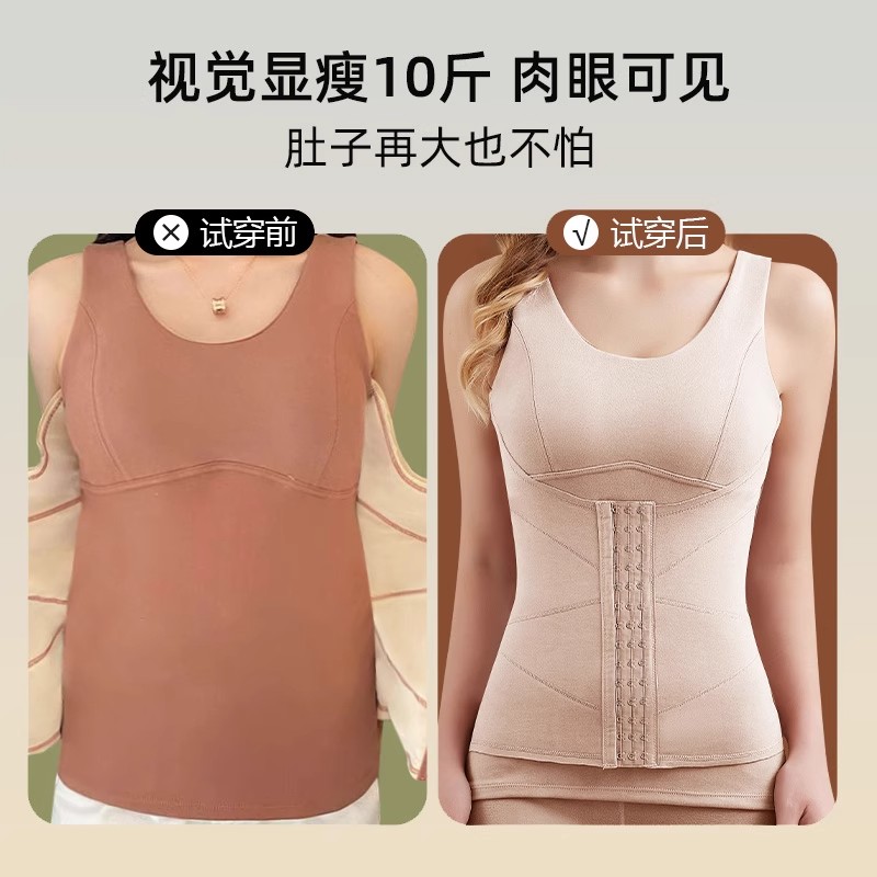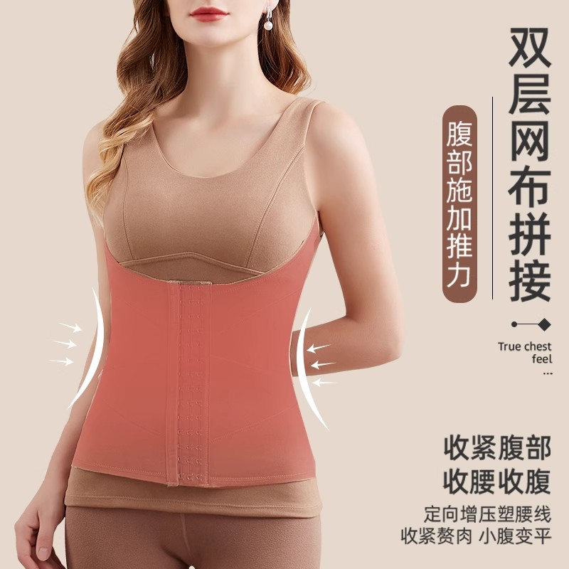 德绒无痕塑身保暖上装 排扣收腹打底加厚内衣发热束腰 女带胸垫修身