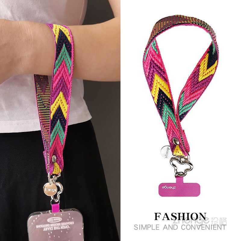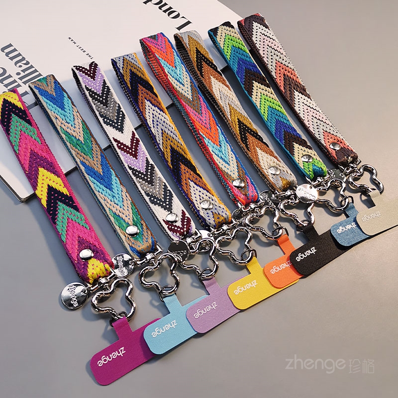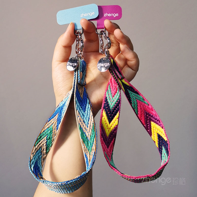 宽版 百搭新品 编织带短款 原创时尚 户外爬山旅游行逛街防丢手提链电话套壳钥匙扣挂件吊绳个性 手机挂绳女手腕式