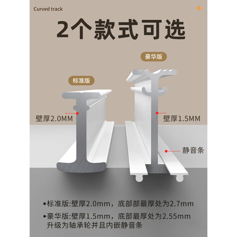 窗帘轨道式 滑轮u型l型双轨道飘窗铝合金弧形滑道静音转弯导轨滑轨