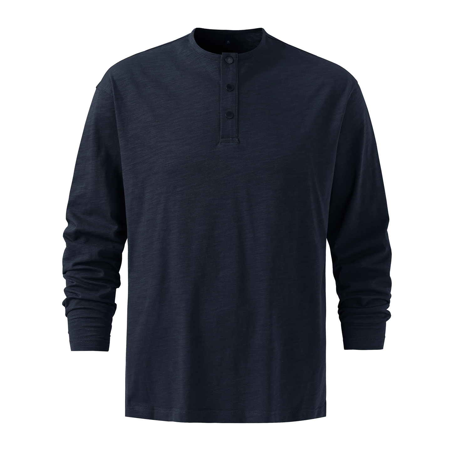 polo衫 美式 潮流亨利领长袖 新款 复古280g重磅竹节棉t恤男纯棉秋季